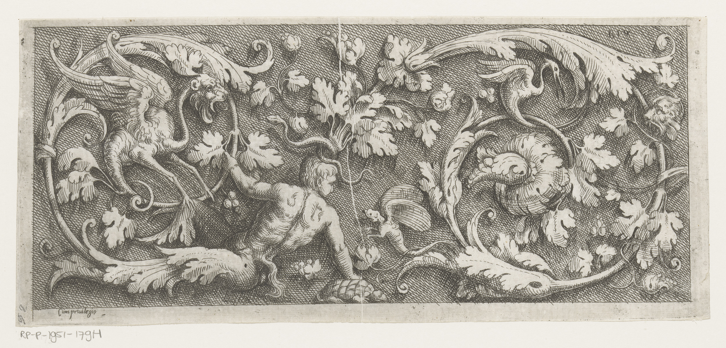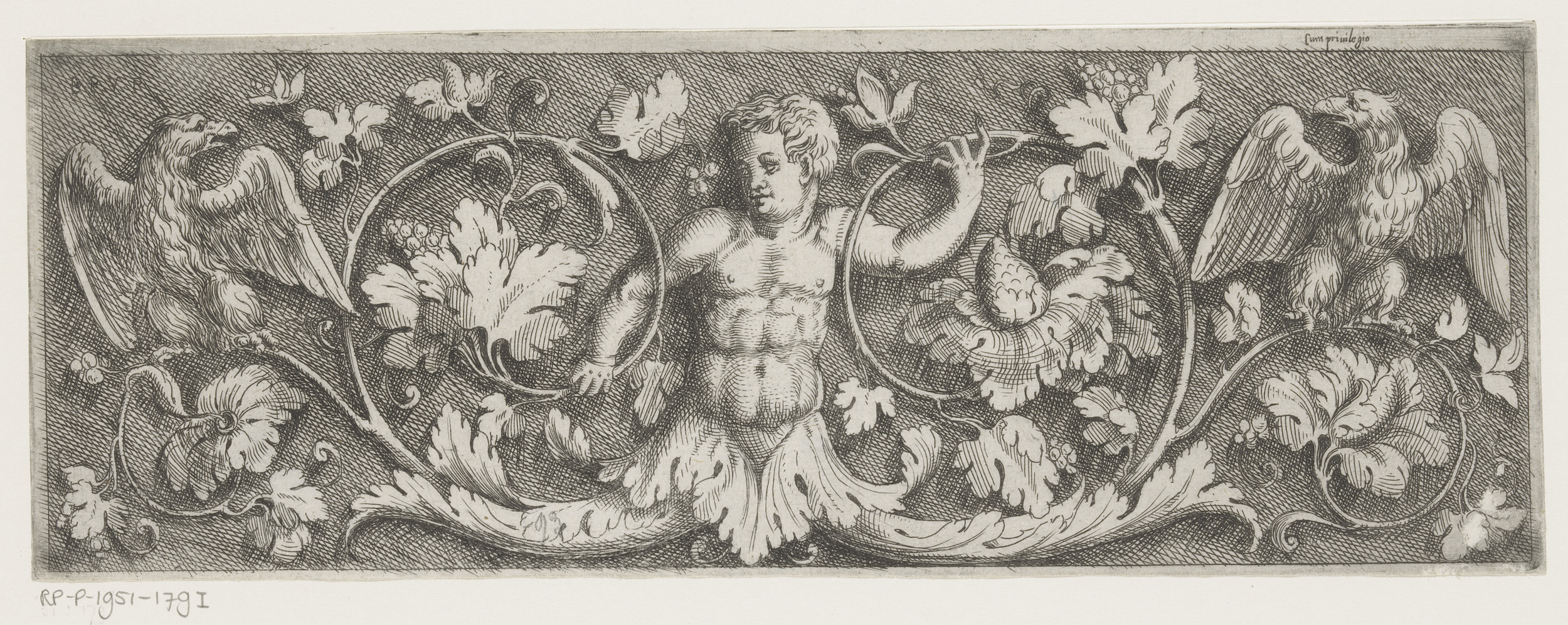 Fries met arabesken, een sater en twee gevleugelde m...