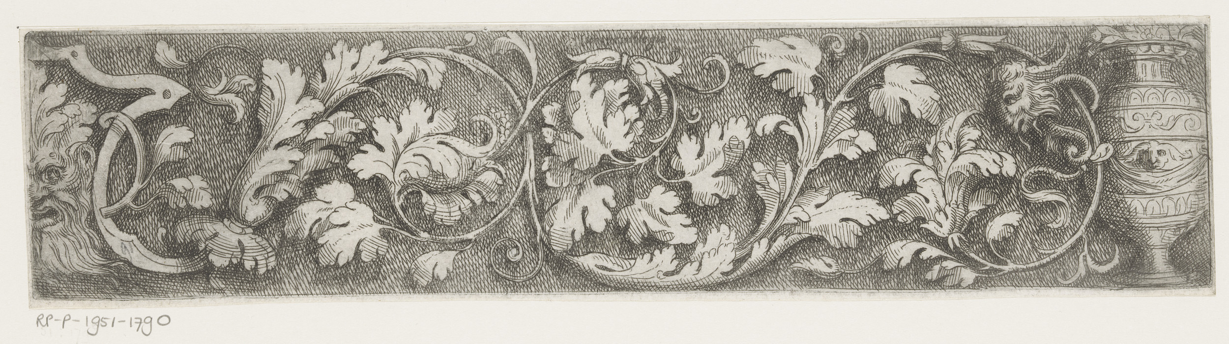 Fries met arabesken, een masker en een vaas