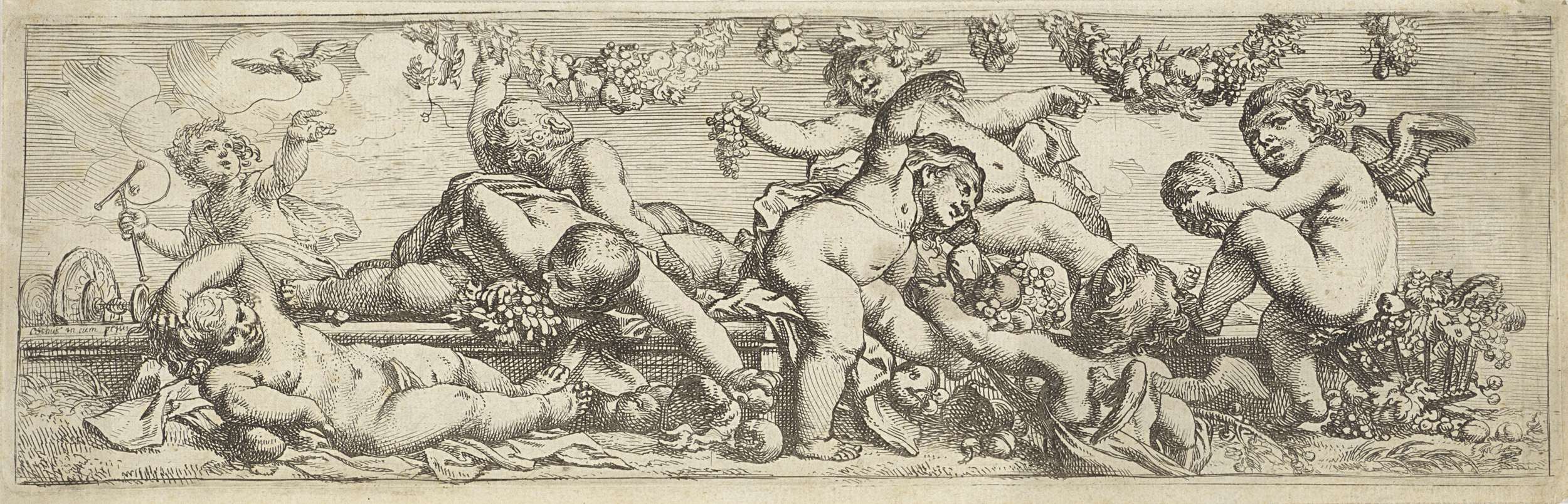 Fries met acht spelende kinderen en putti