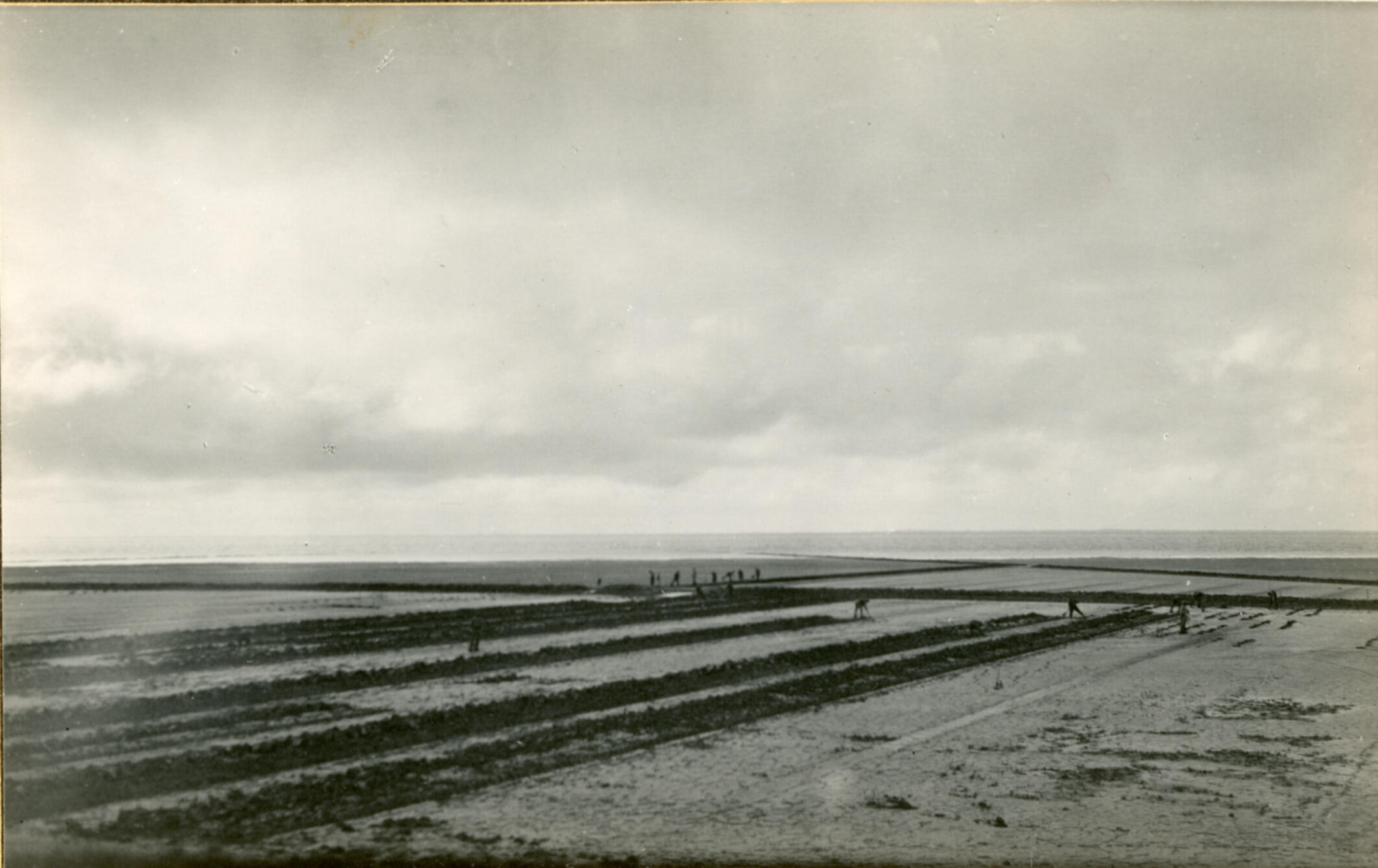 Voren trekken op het wad, Holwerd, 1937 (zwart-wit f...