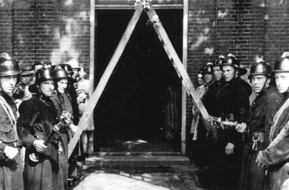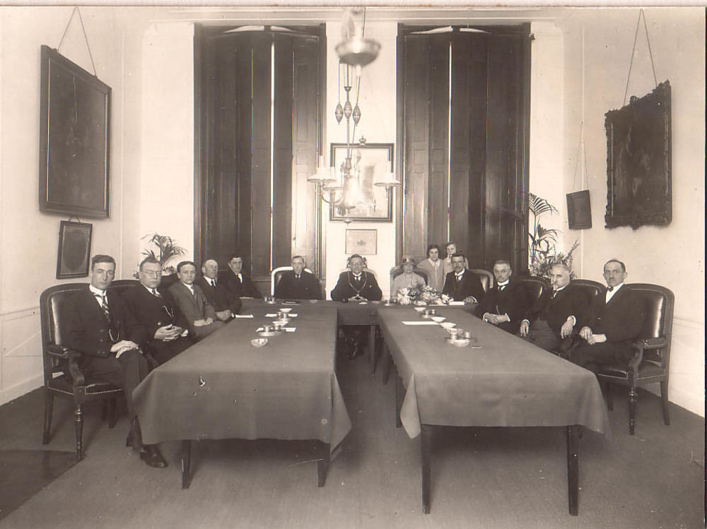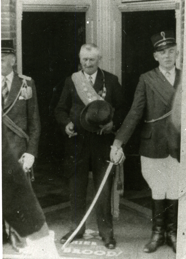 Zwart-wit foto van de Schutterij Eensgezindheid tijd...