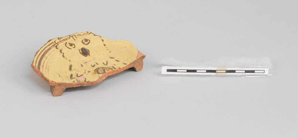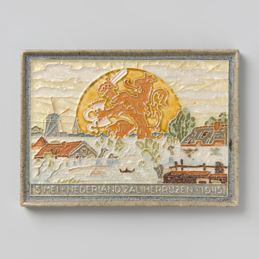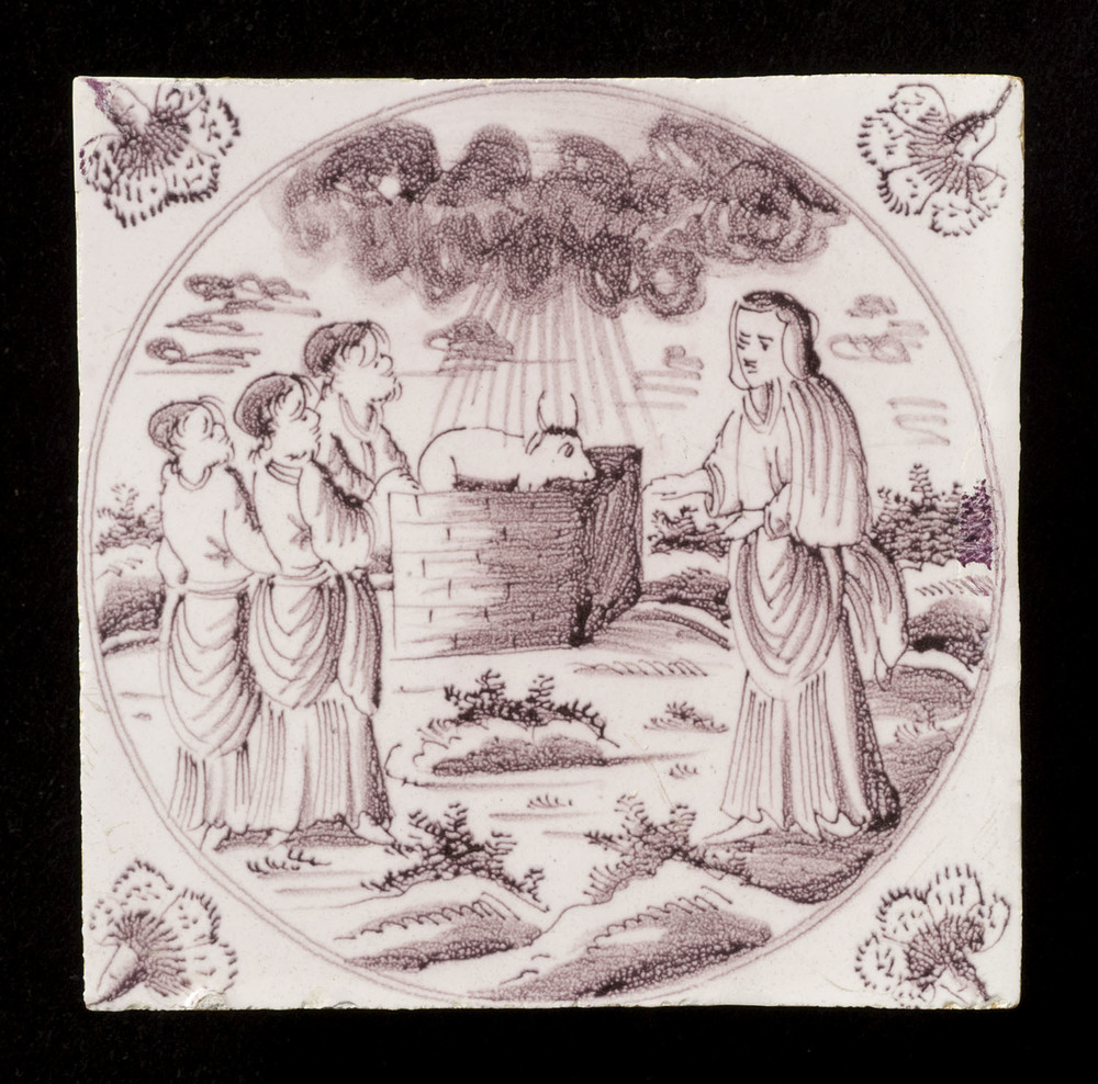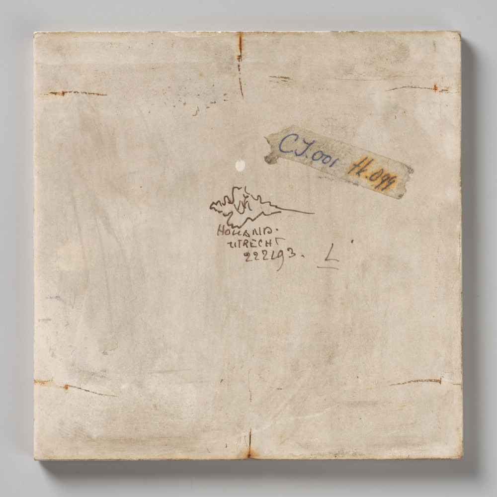 Tegel van keramiek met tinglazuur, voorstellende: No...