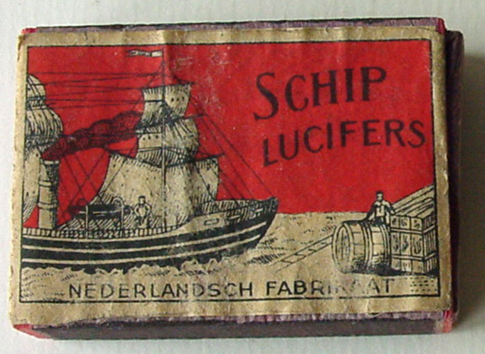 Luciferdoosje van papier en hout voorstellend een sc...