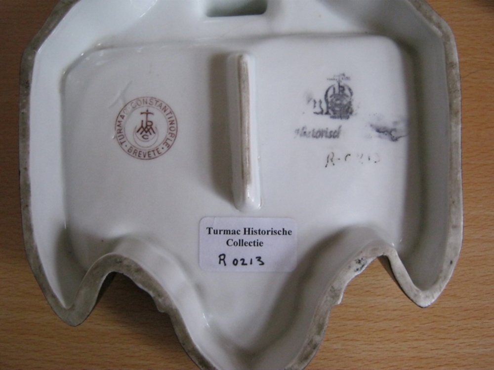 Asbak van keramiek gedecoreerd met onder andere het ...
