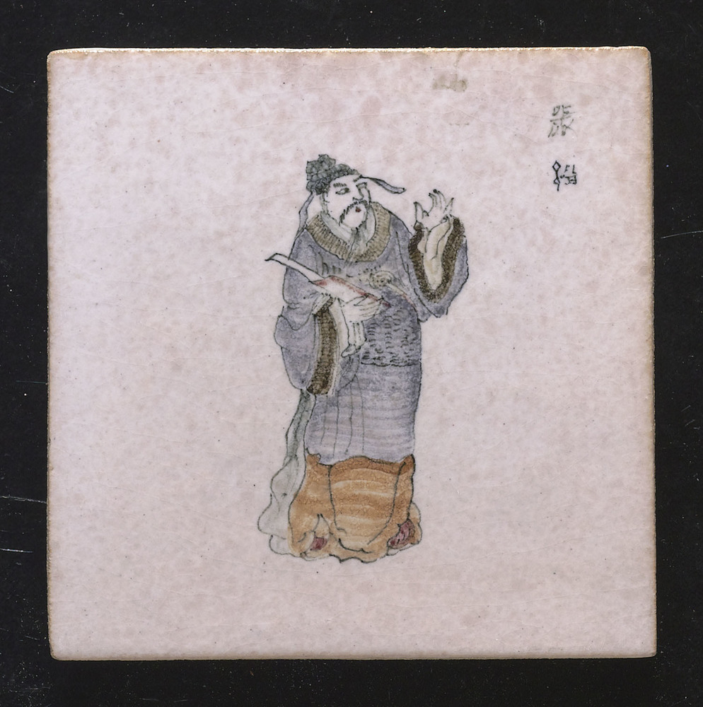 Tegel van keramiek, tinglazuur, voorstellende een Ch...
