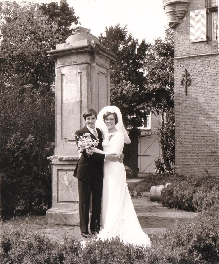 Bruidspaar in de tuin van het Maarten van Rosummuseum