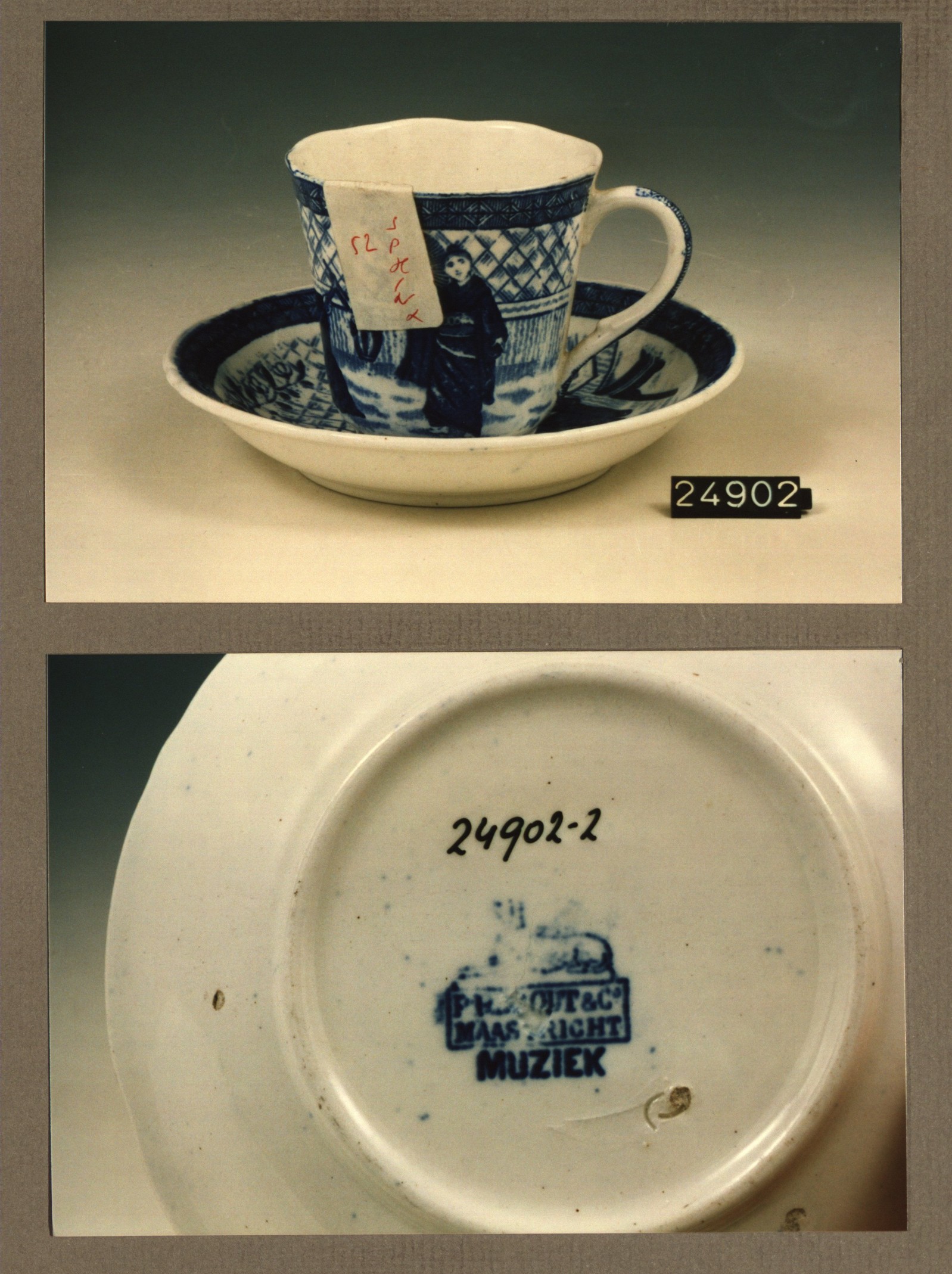 Kop en schotel, model Tulipe met decor Muziek