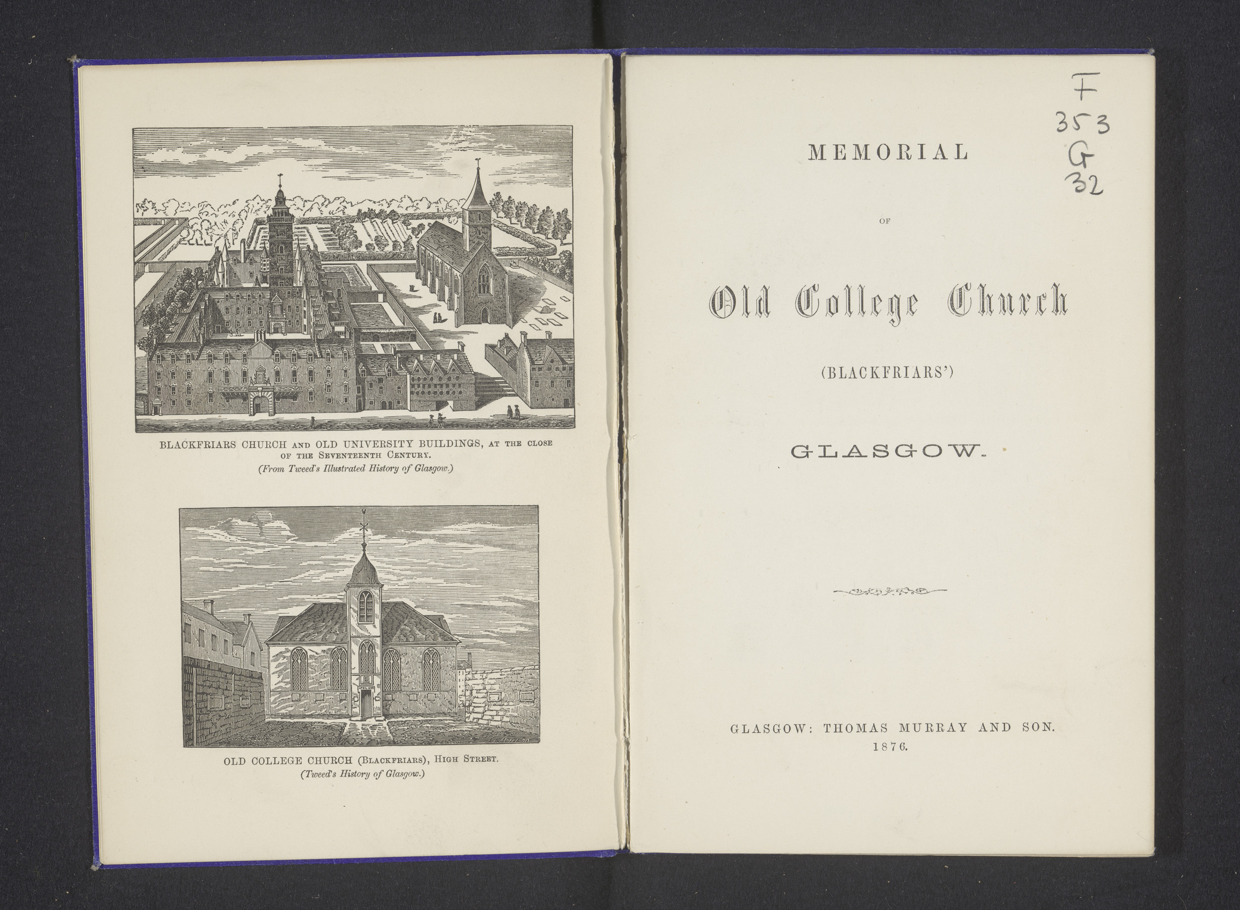 Memorial of old college church (Blackfrairs') Glasgow
