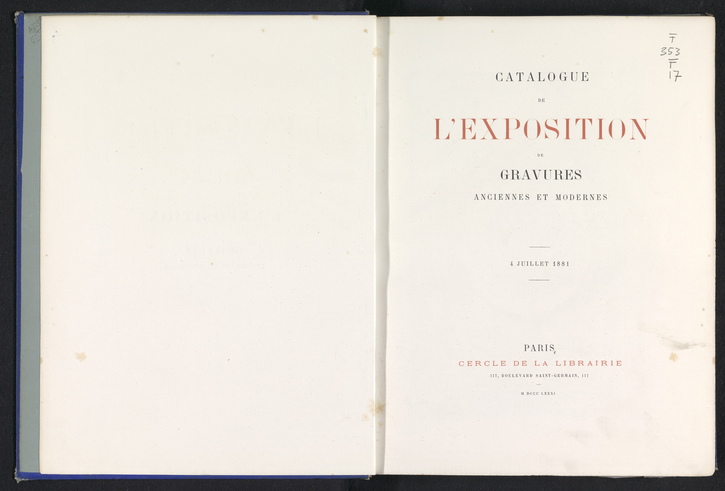 Catalogue de l'exposition de gravures anciennes et m...