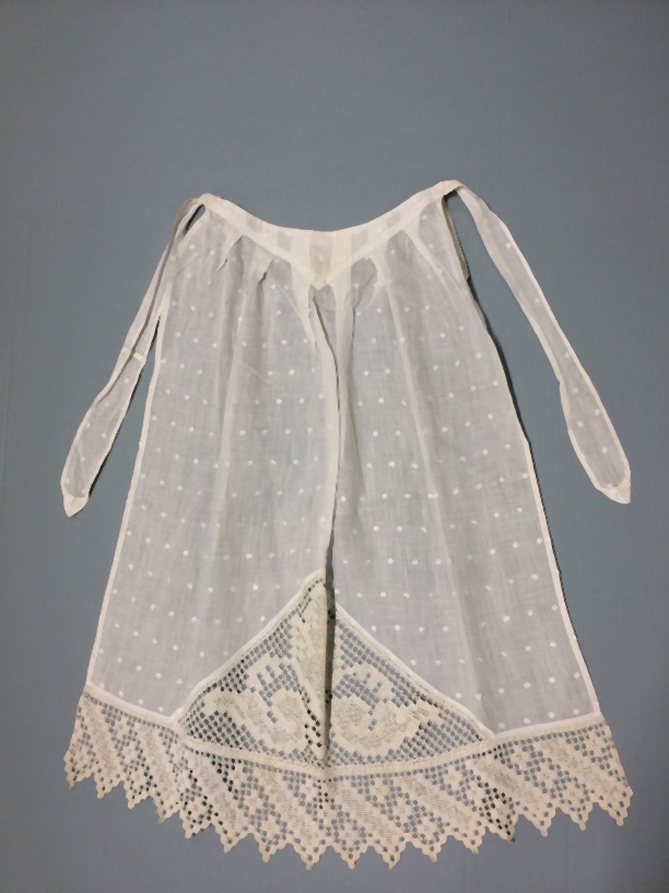 Schortje, neteldoek met ingeweven stippen, met drieh...