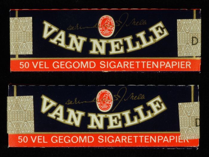 Twee donkerblauwe pakjes VAN NELLE sigarettenpapier,...