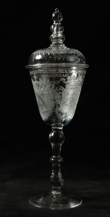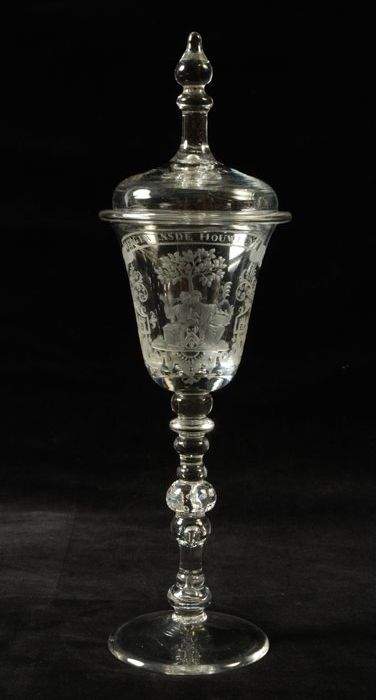 Kelkglas, wijnglas met deksel, gegraveerd met famili...