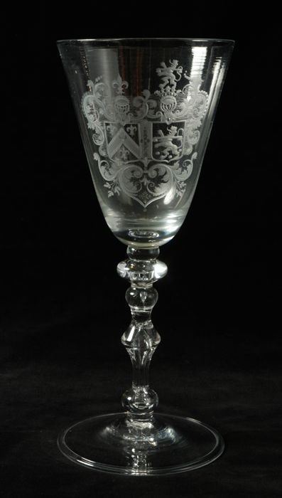 Kelkglas, wijnglas, gegraveerd met familiewapens van...
