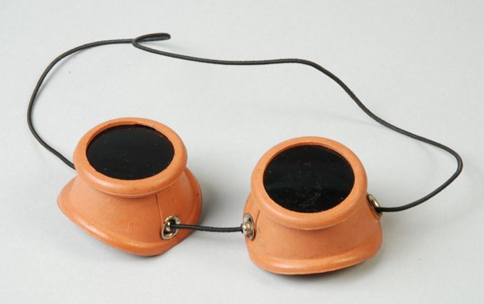 Hoogtezonbril bestaand uit twee groene glazen gevat ...