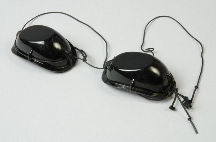Hoogtezonbril bestaand uit twee zwarte kunststof dop...