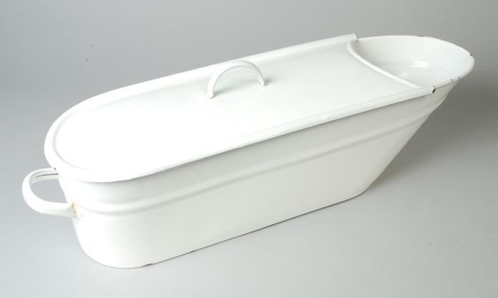 Armbad, langwerpig wit emaillen bad, met deksel met ...
