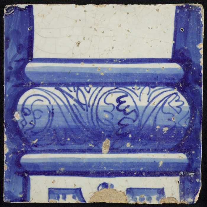 Tegel van schoorsteenpilaster, blauw op wit, onderzi...