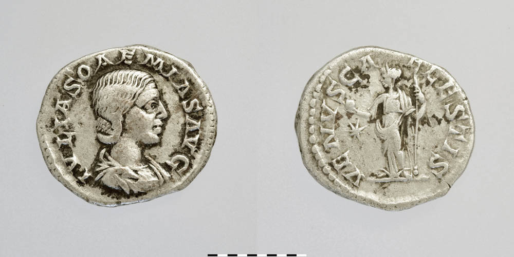 Denarius van Julia Soaemias, munt van zilver uit de ...