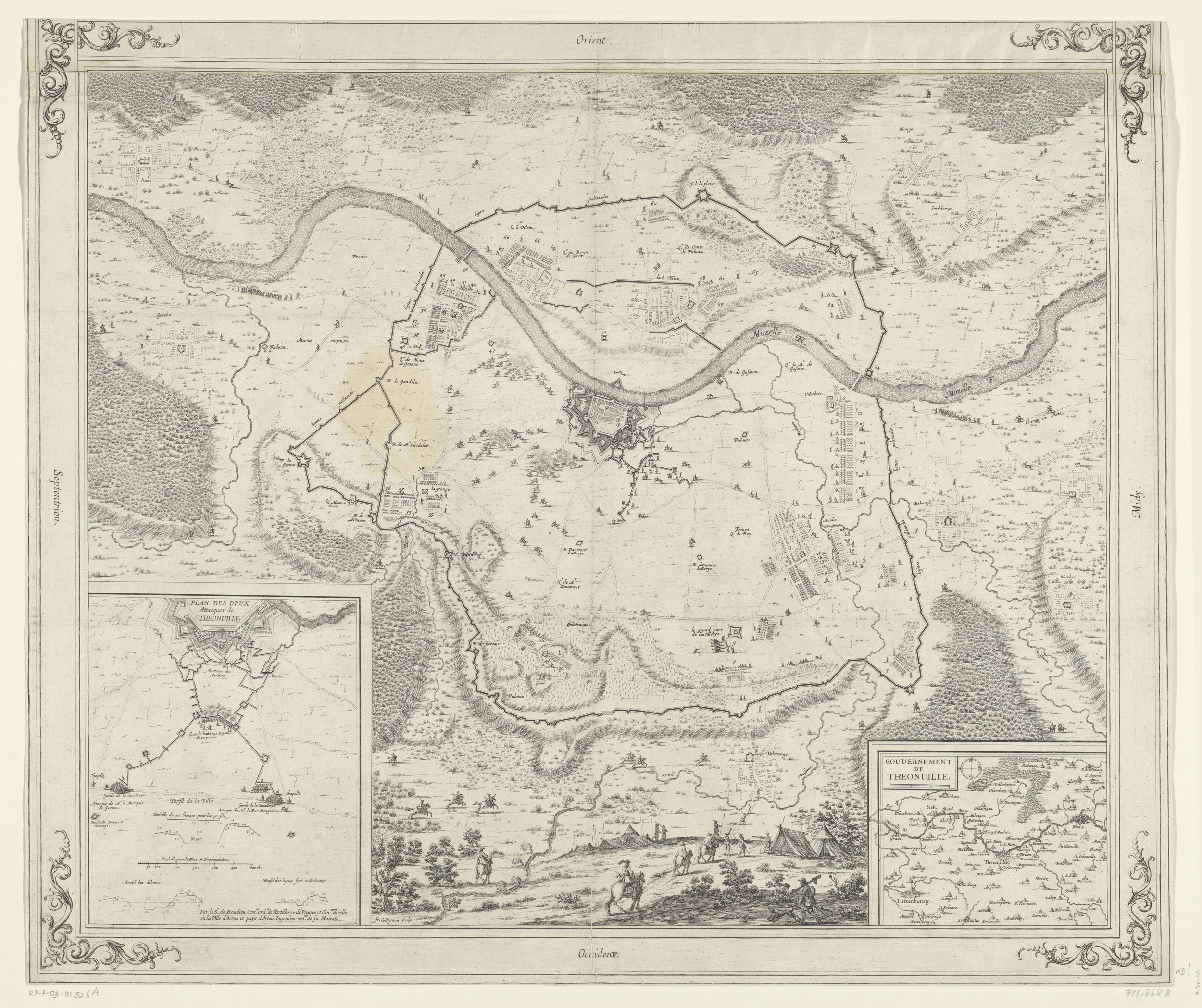 Kaart van het beleg van Thionville, 1643