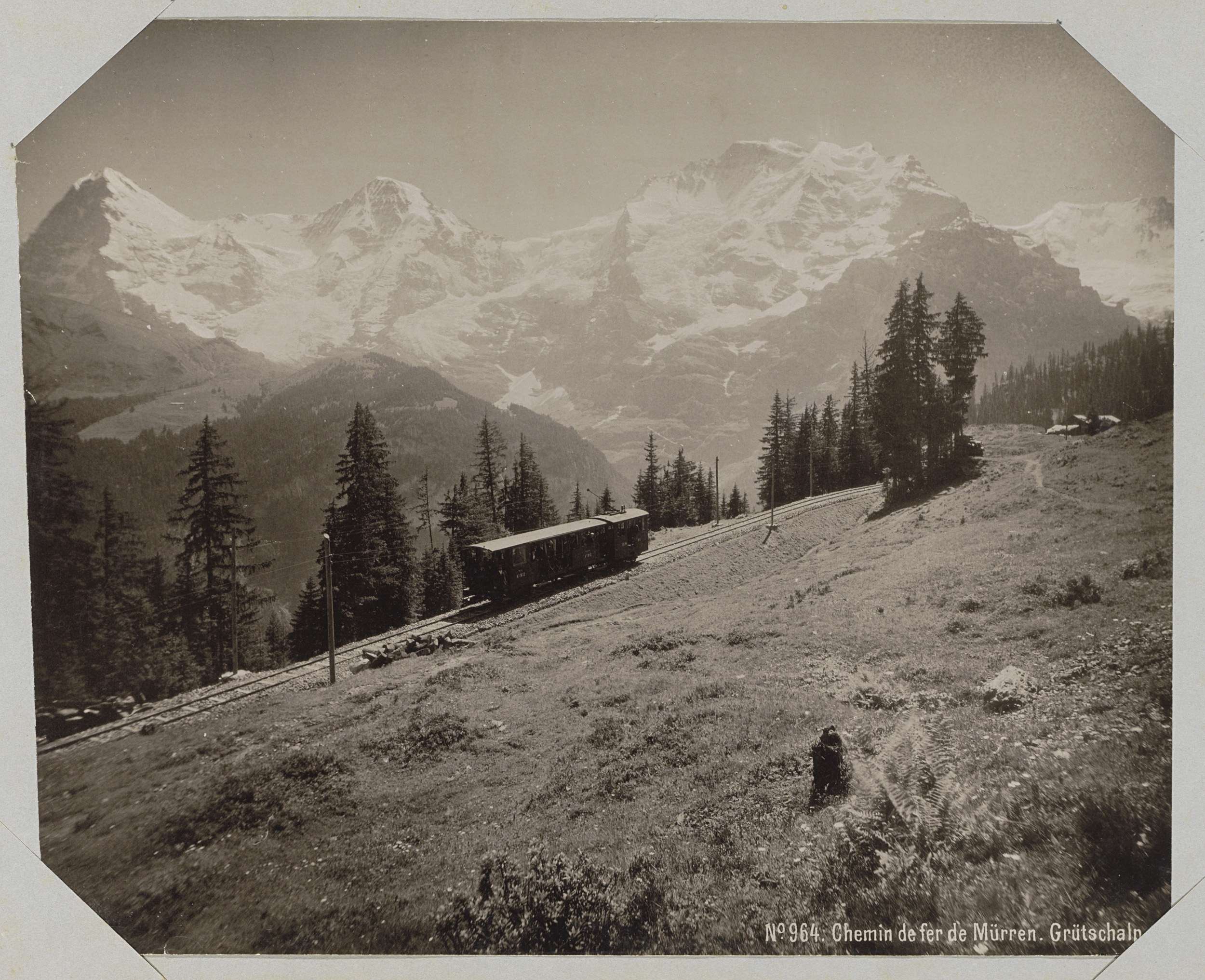 Treinstel op het spoor tussen Grutschalp en Mürren