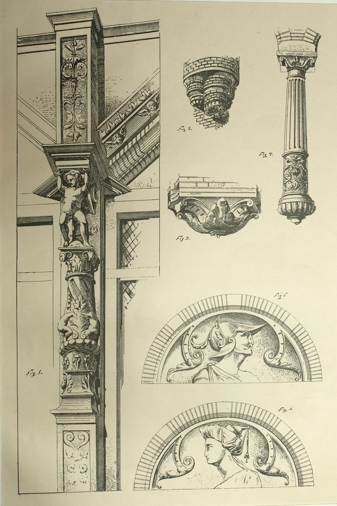 zes details van gevels, Zaltbommel op een vel papier...