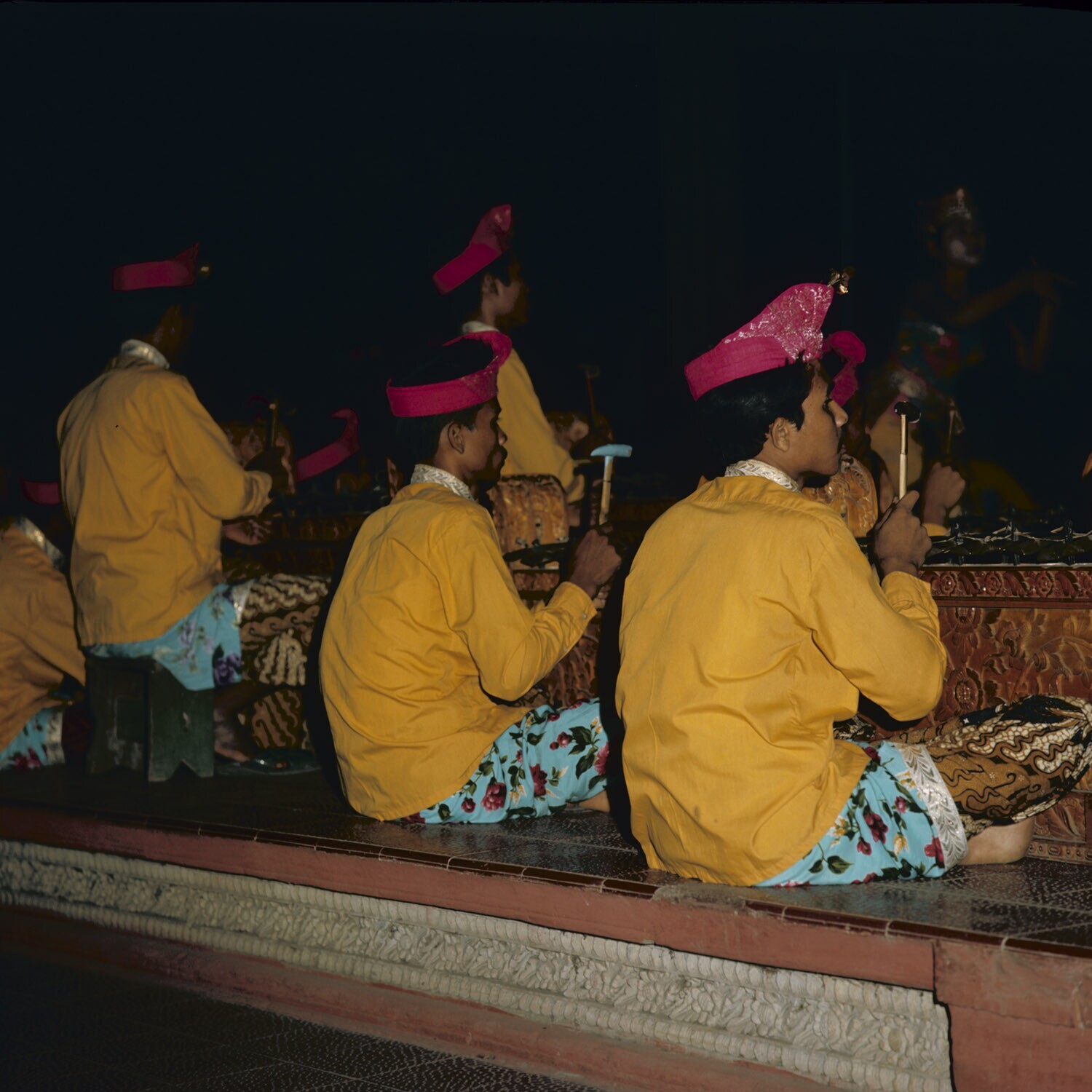 Gamelanorkest tijdens een dansvoorstelling in het Ba...