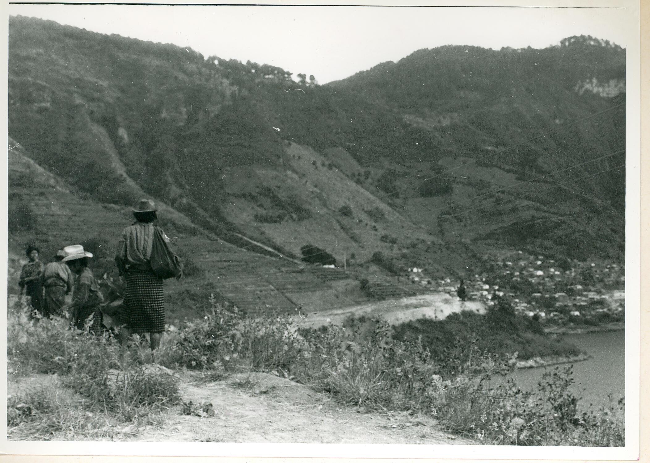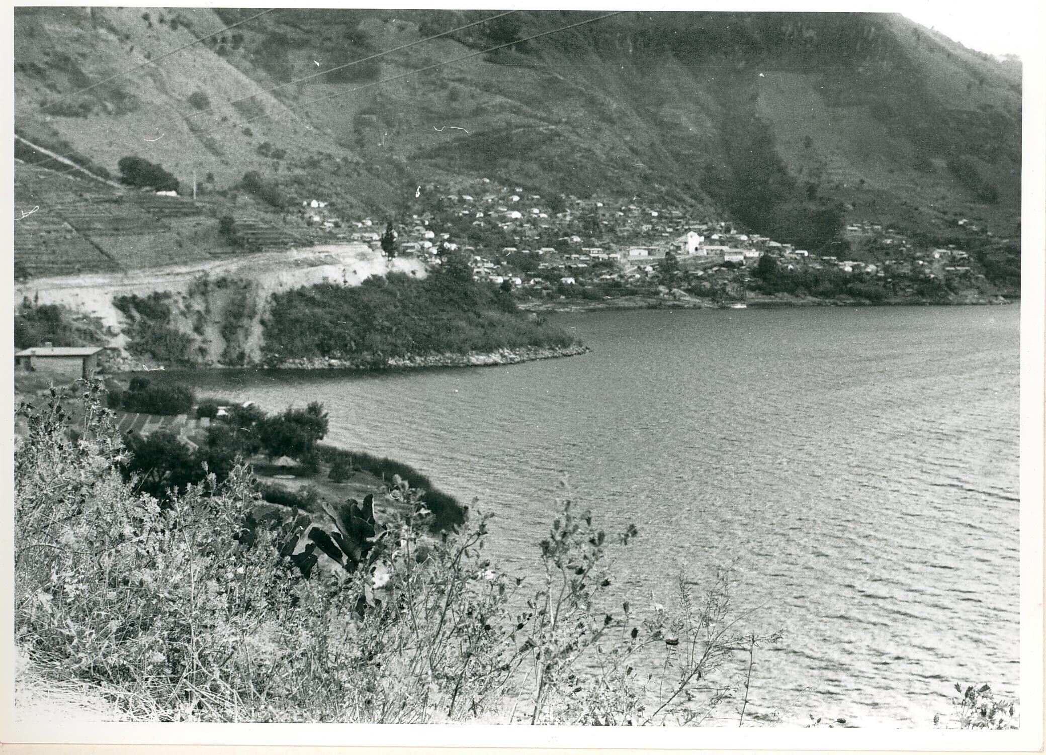 gezicht over het meer op het dorp