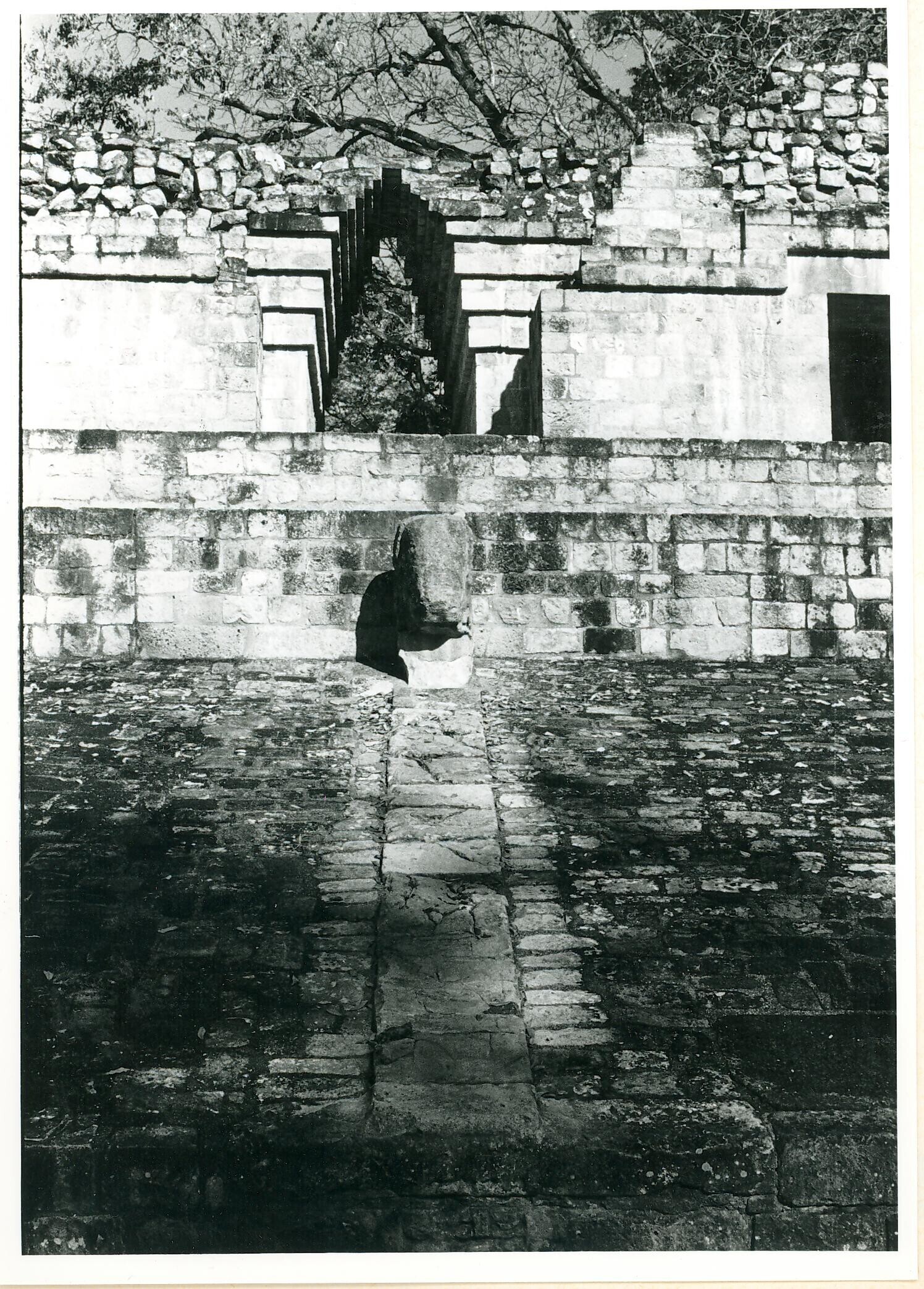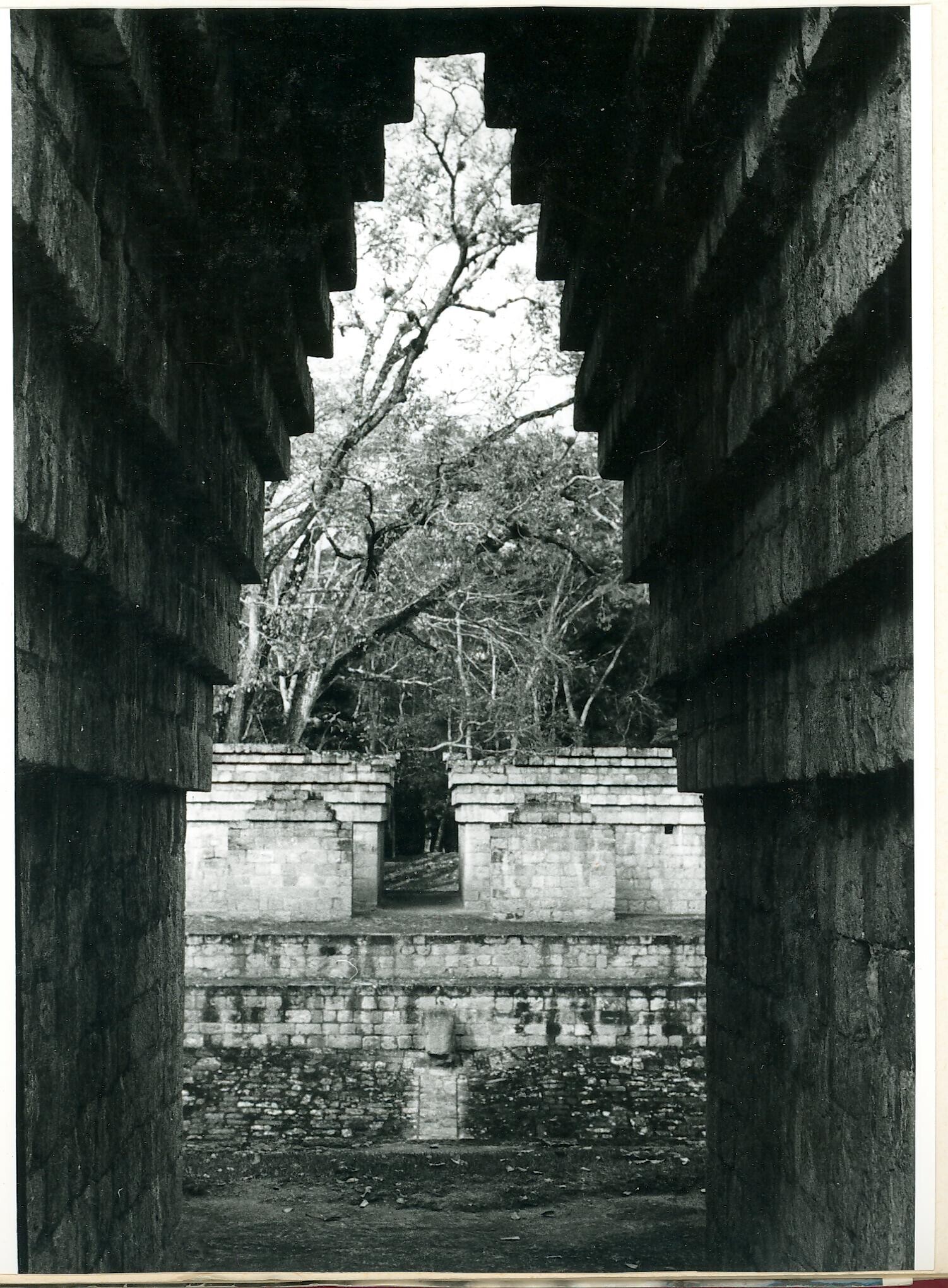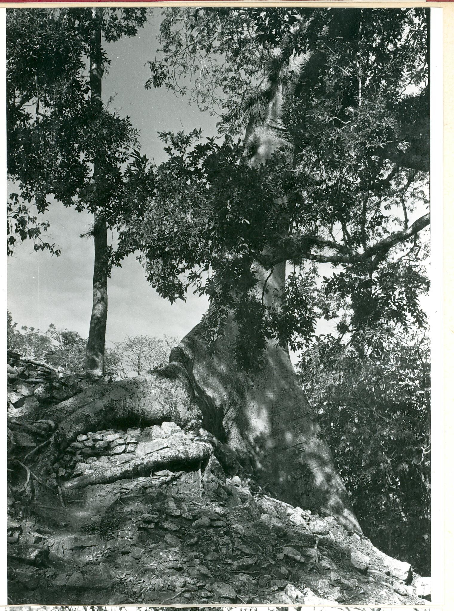 met bomen overgroeide ruïnes