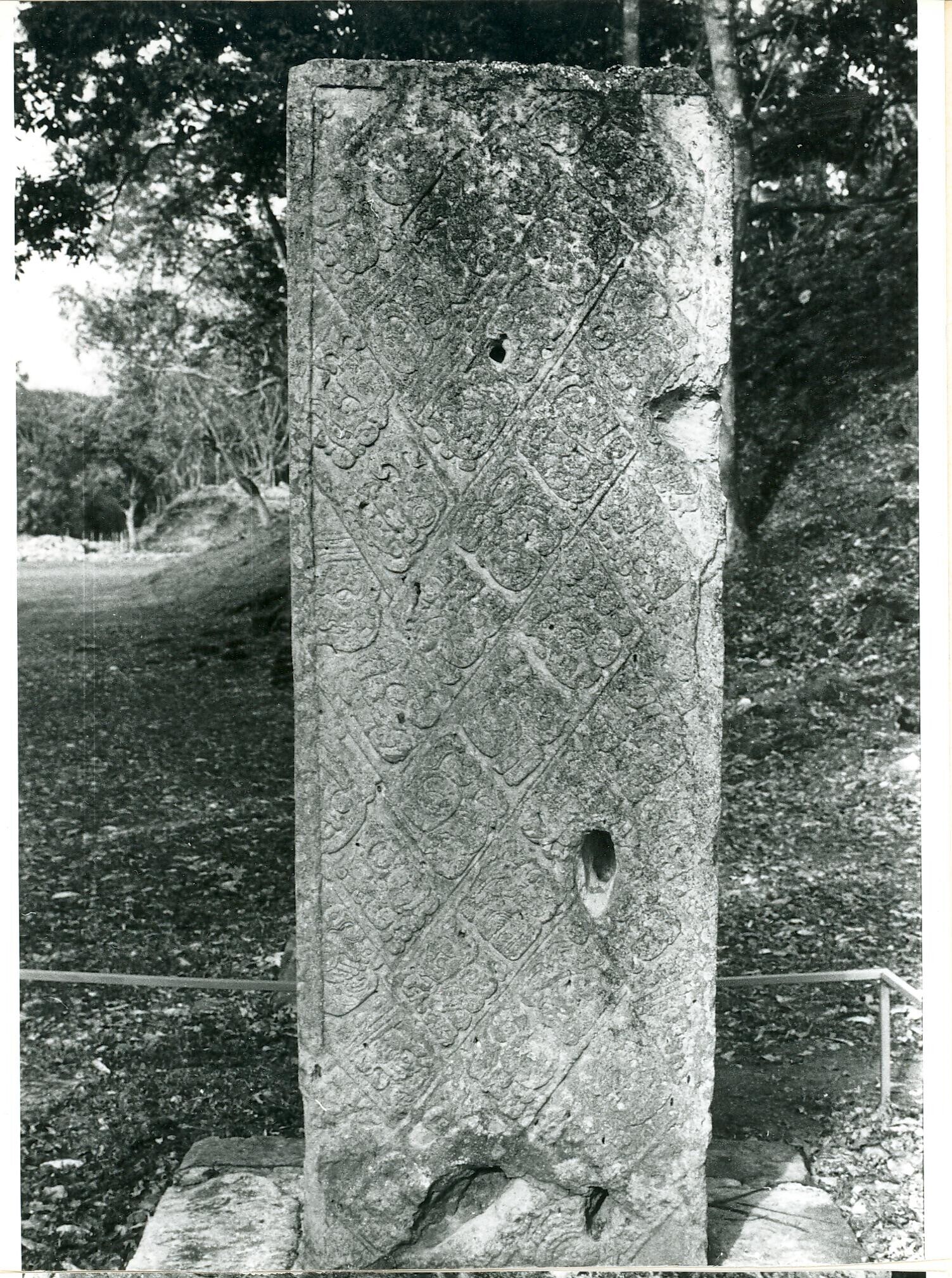 'Stèle J' met tekst in matmotief (detail)