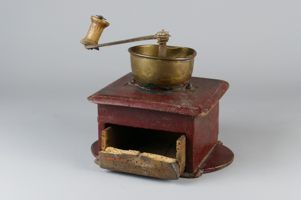 koffiemolen van hout, afkomstig uit de boerderij op ...