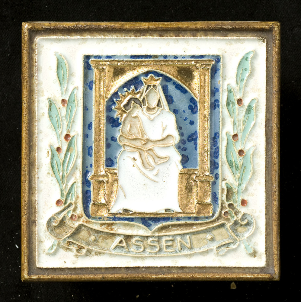 Tegel in cloisonné-techniek, met voorstelling: wapen...