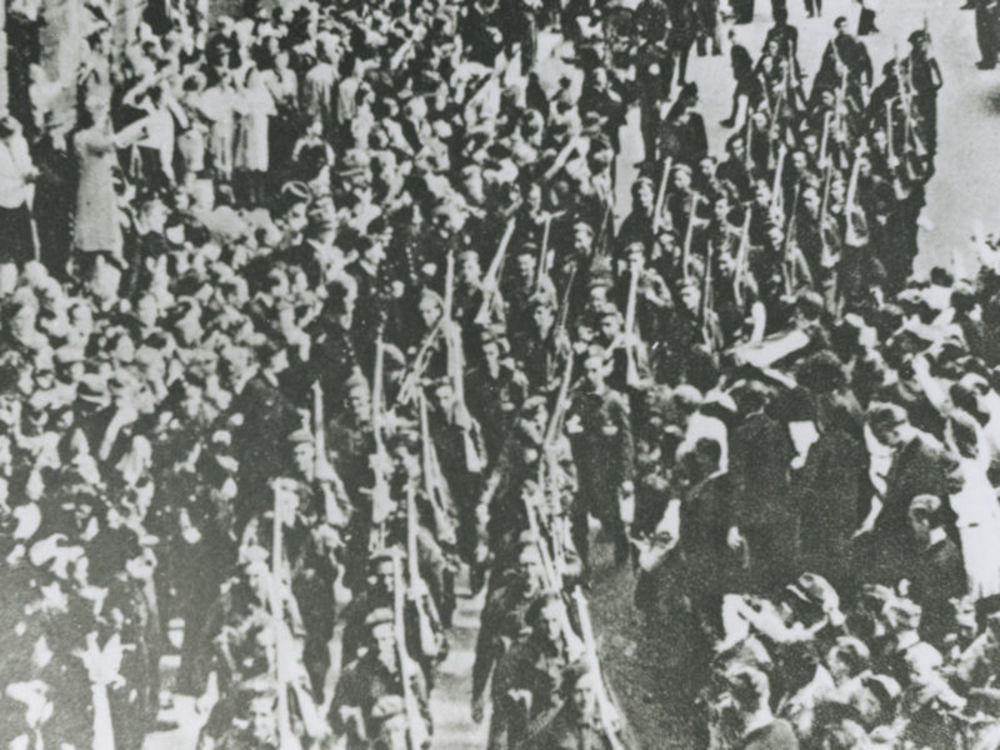 Foto paraderende Canadezen in Nederlandse binnenstad...