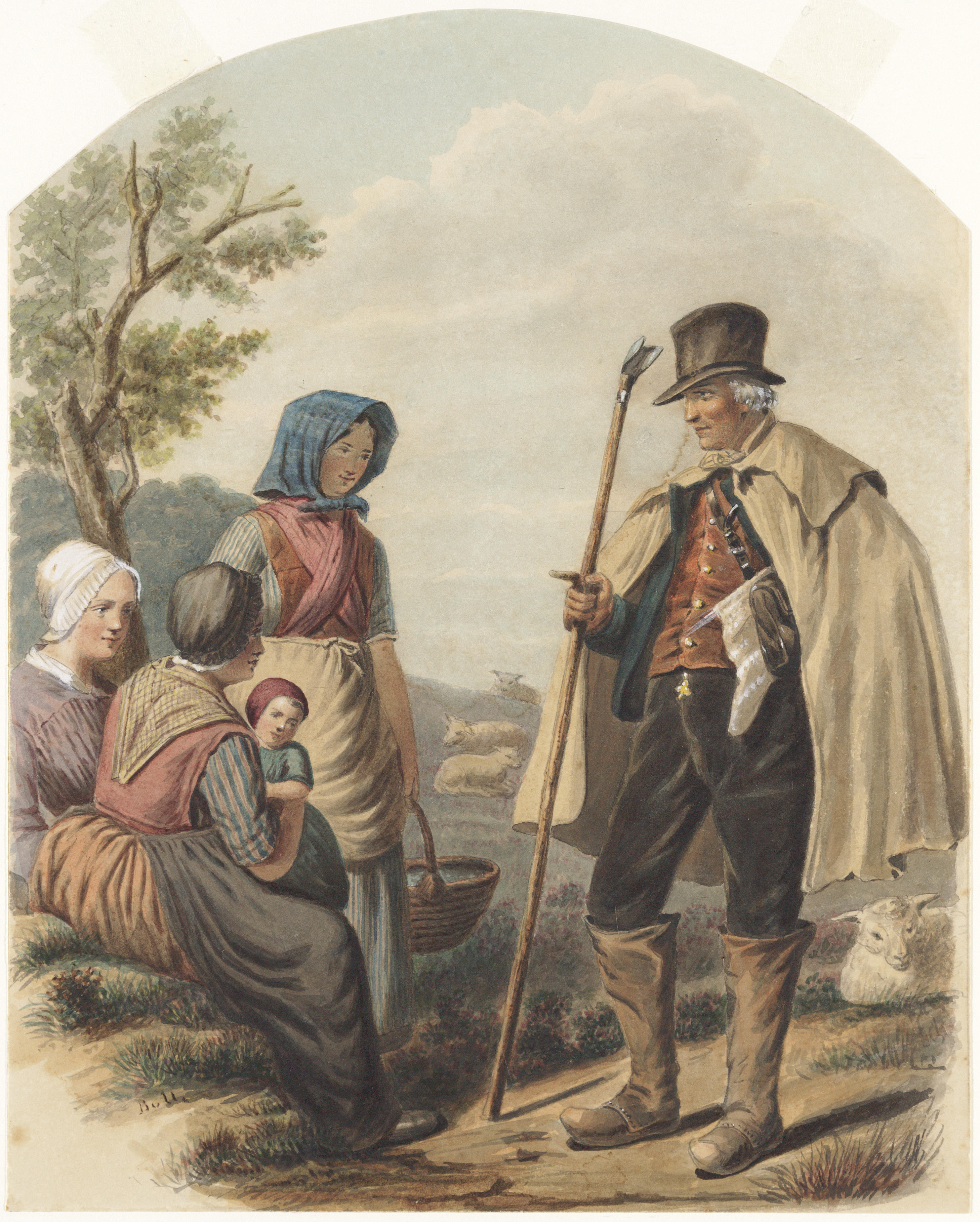 Drentse schaapherder met vrouwen en kind