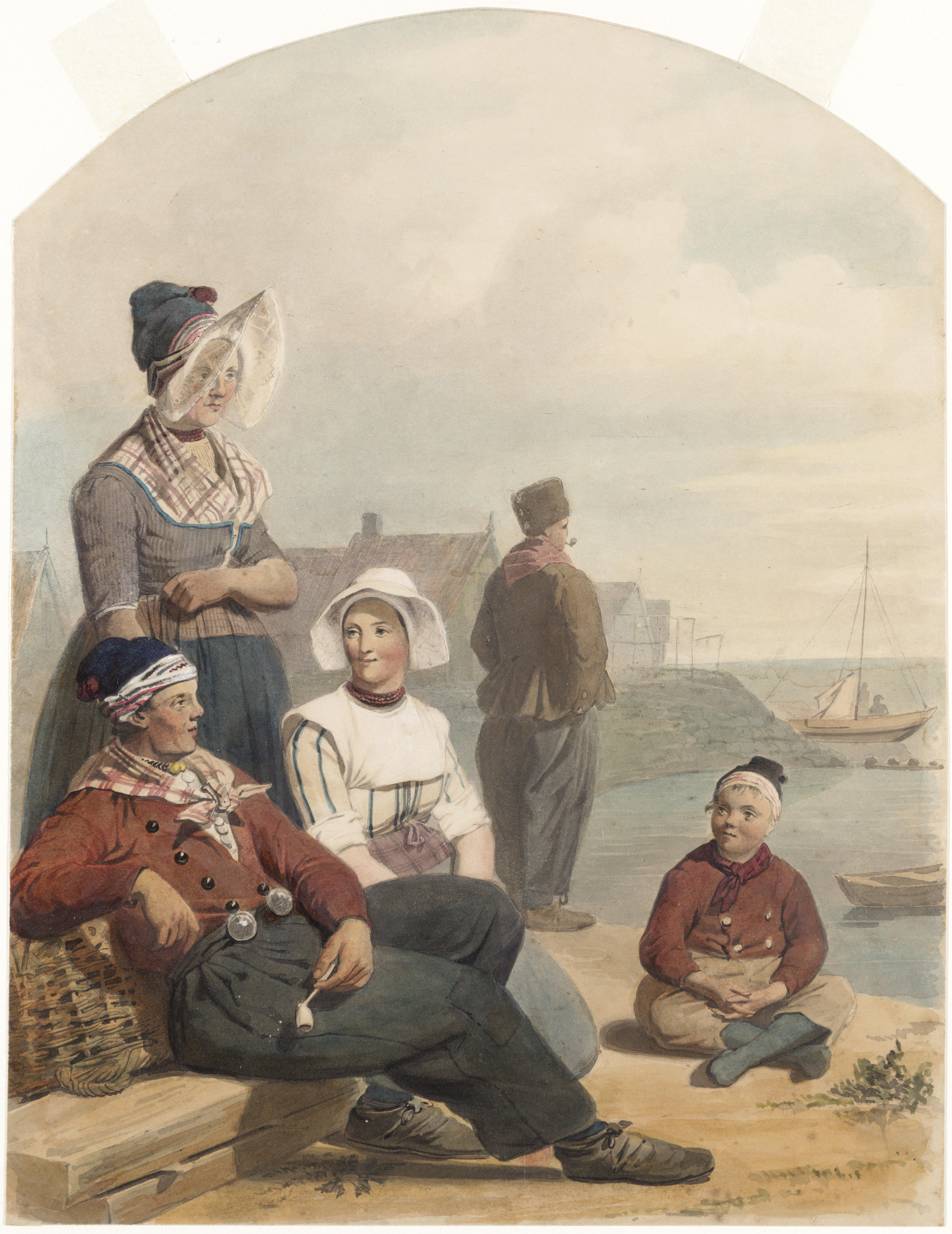 Groepje Volendammers bij de haven