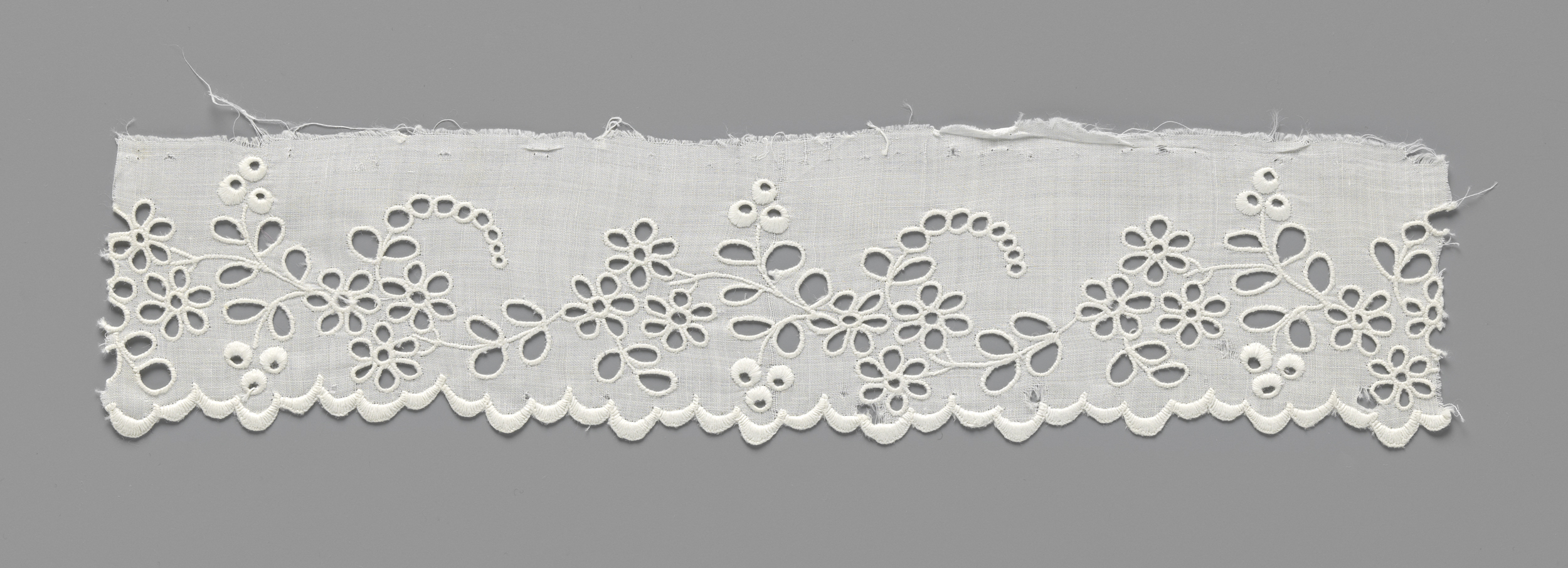 Strook katoen met kantborduurwerk met opengewerkte b...