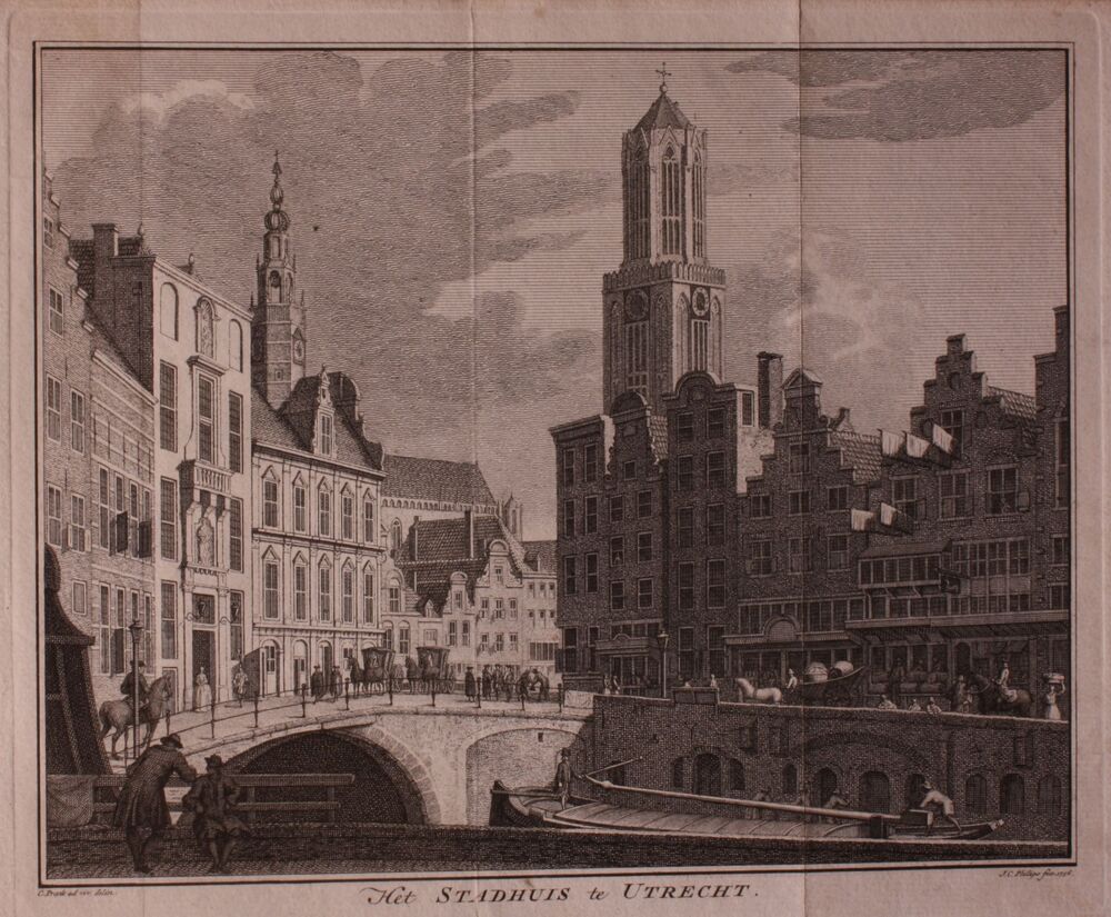 Gravure, voorstellende een gezicht op Tiel met zinne...