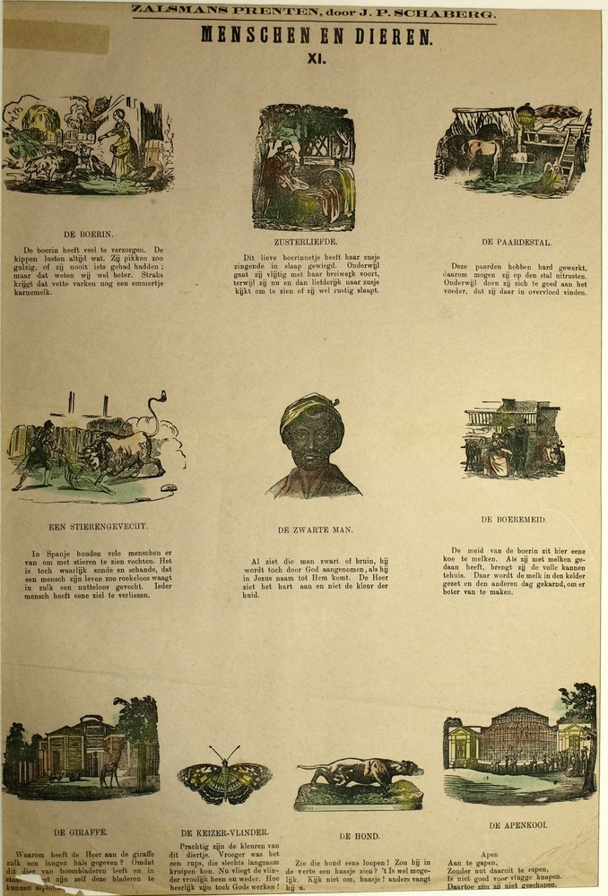 Centsprent met tien gekleurde prentjes over diverse ...