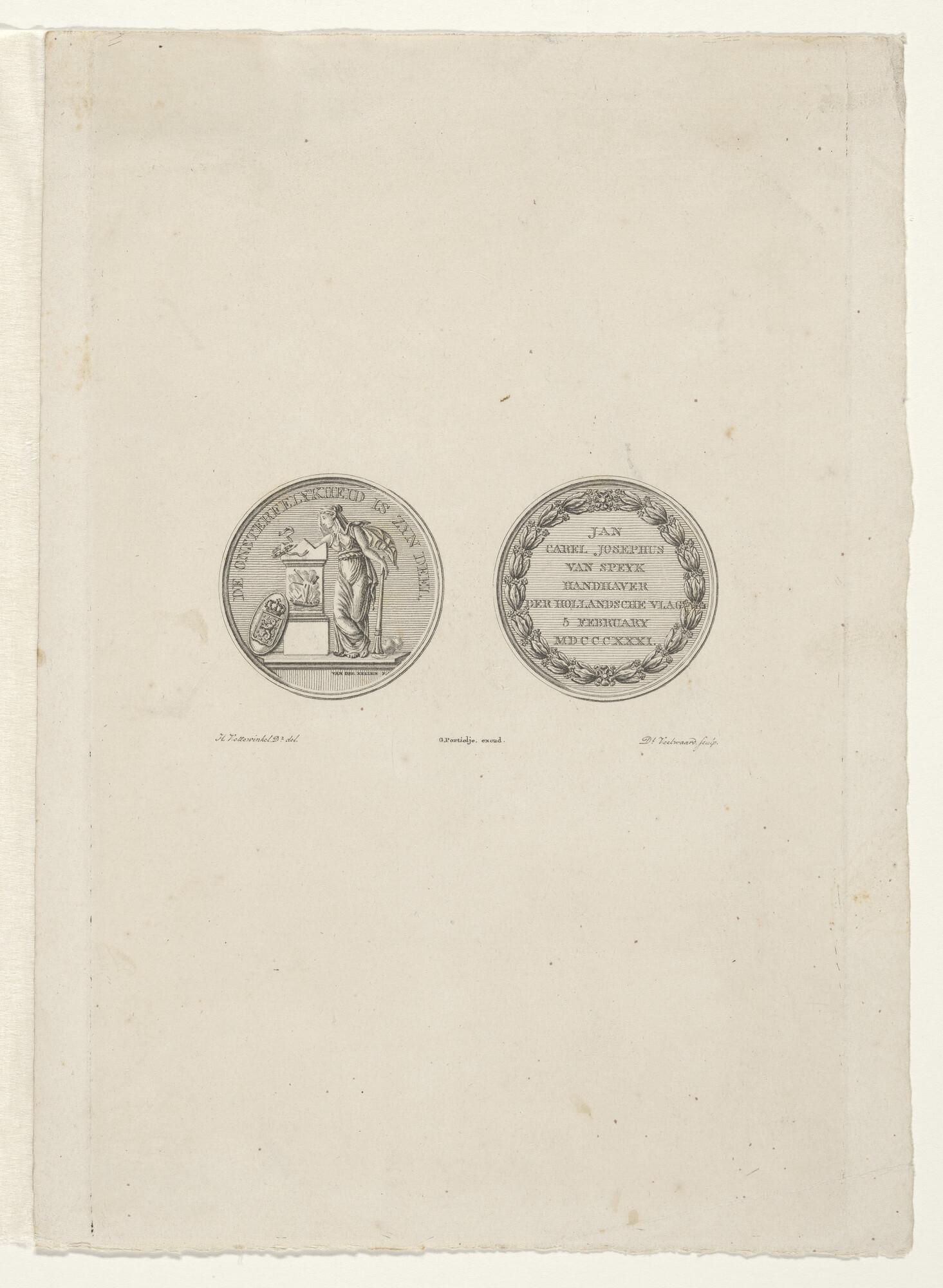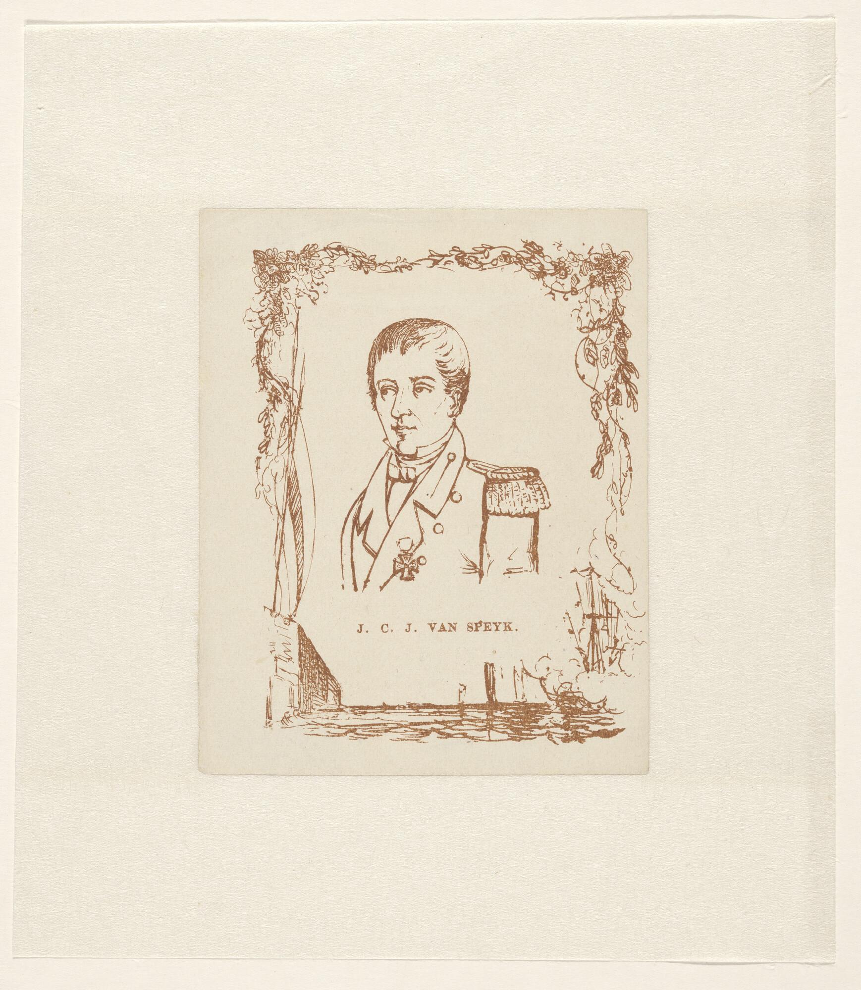 Portret van J.C.J. van Speijk in ovaal omgeven door ...
