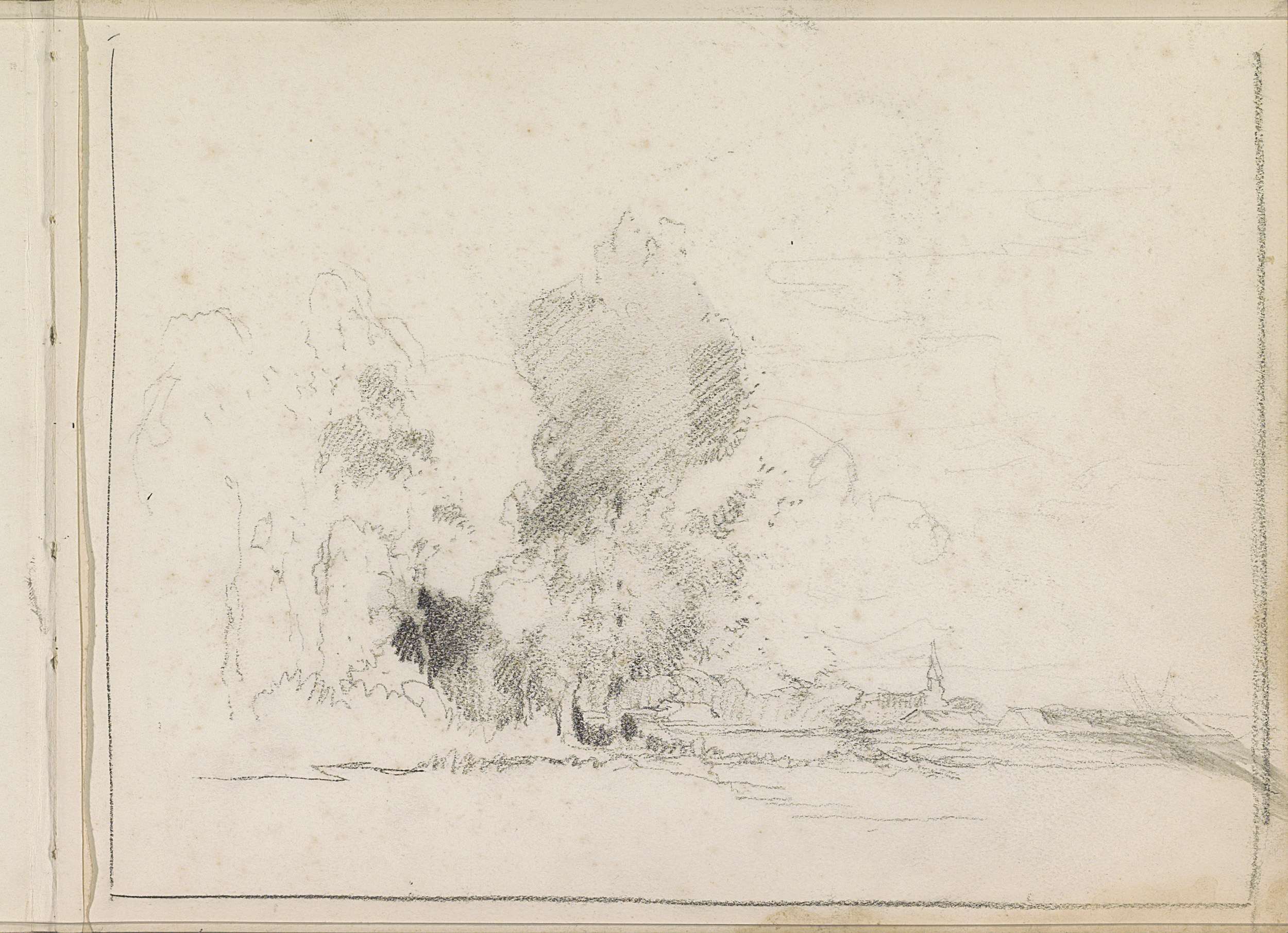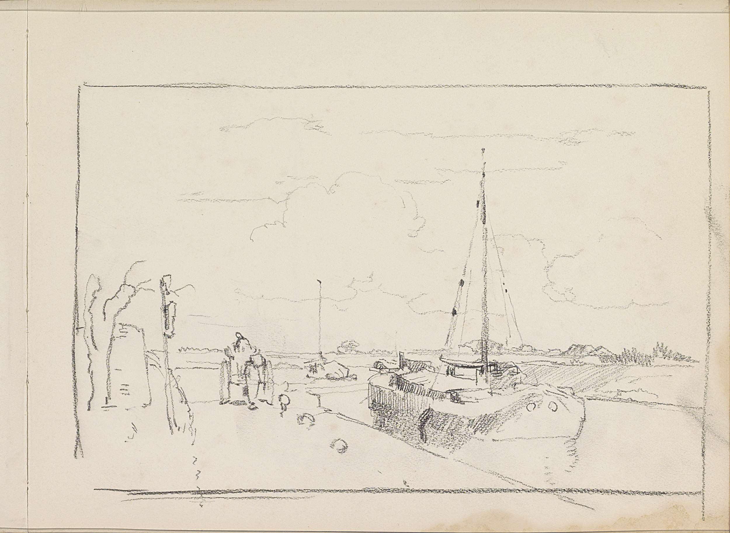 Landschap met een zeilboot bij een waterkant