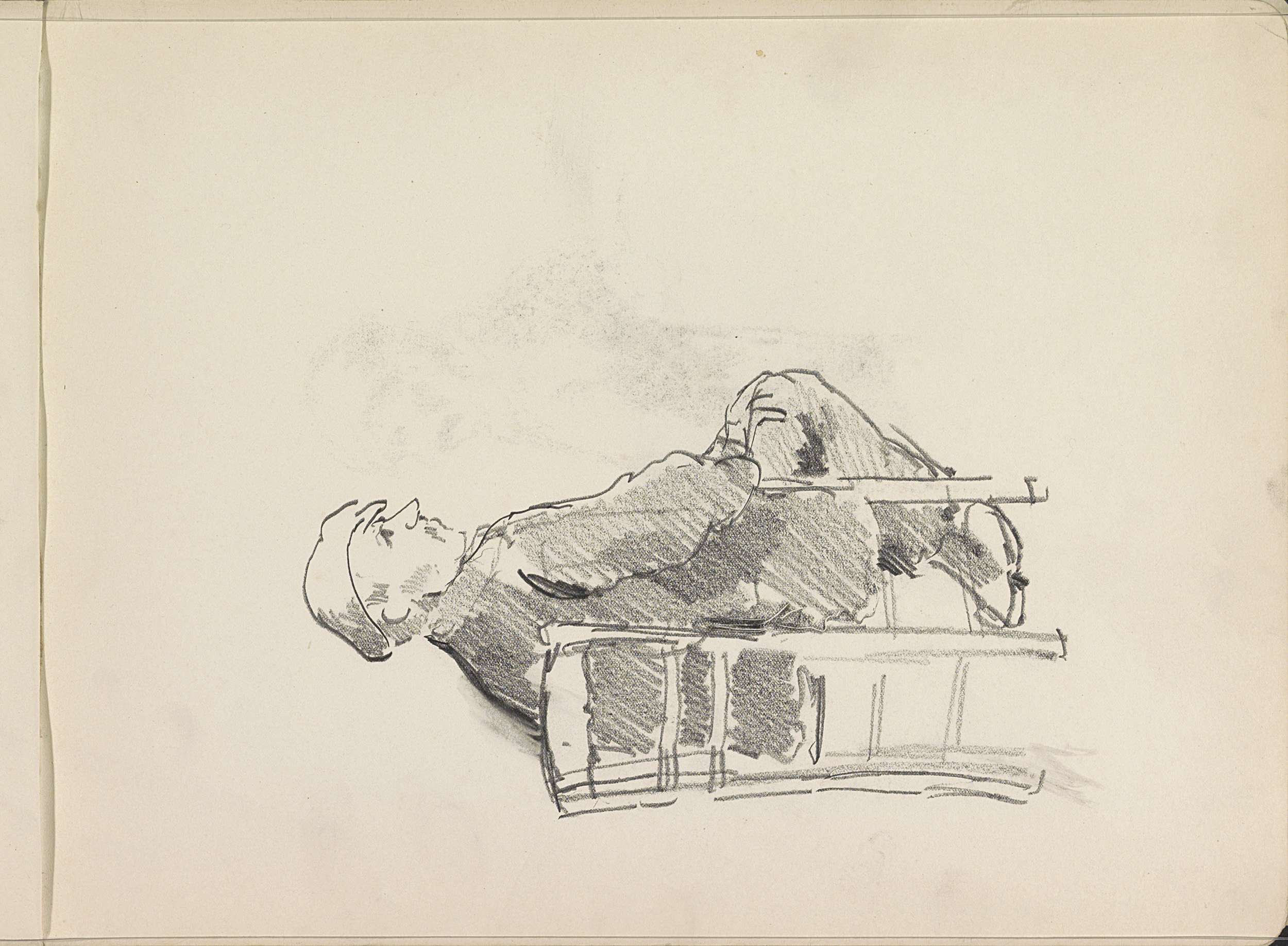 Man met een pet zittend op een stoel