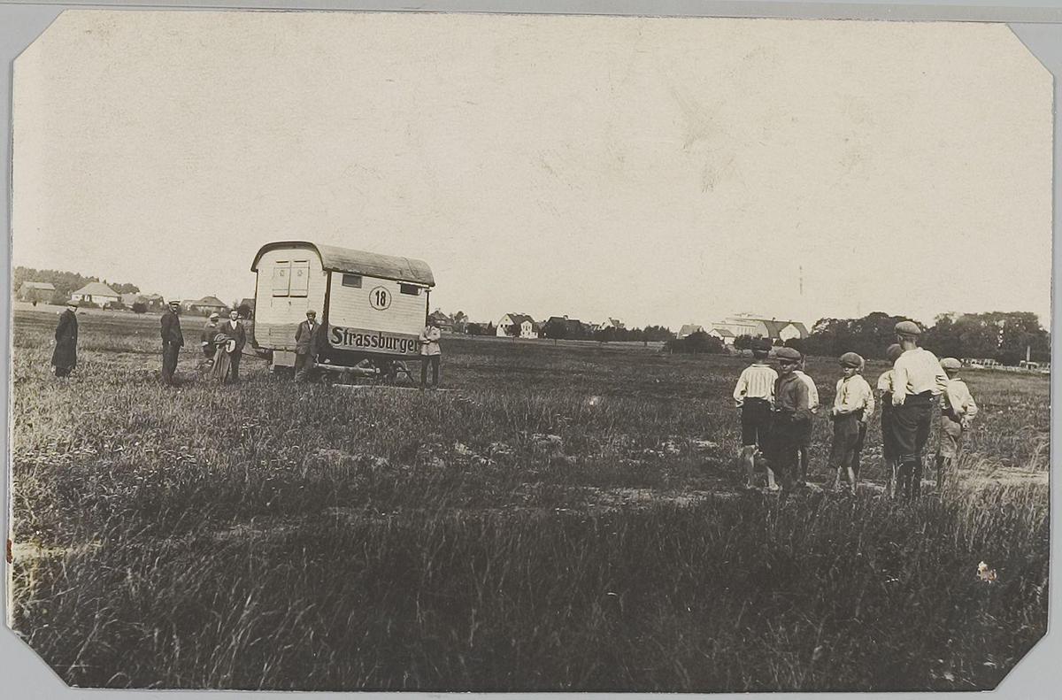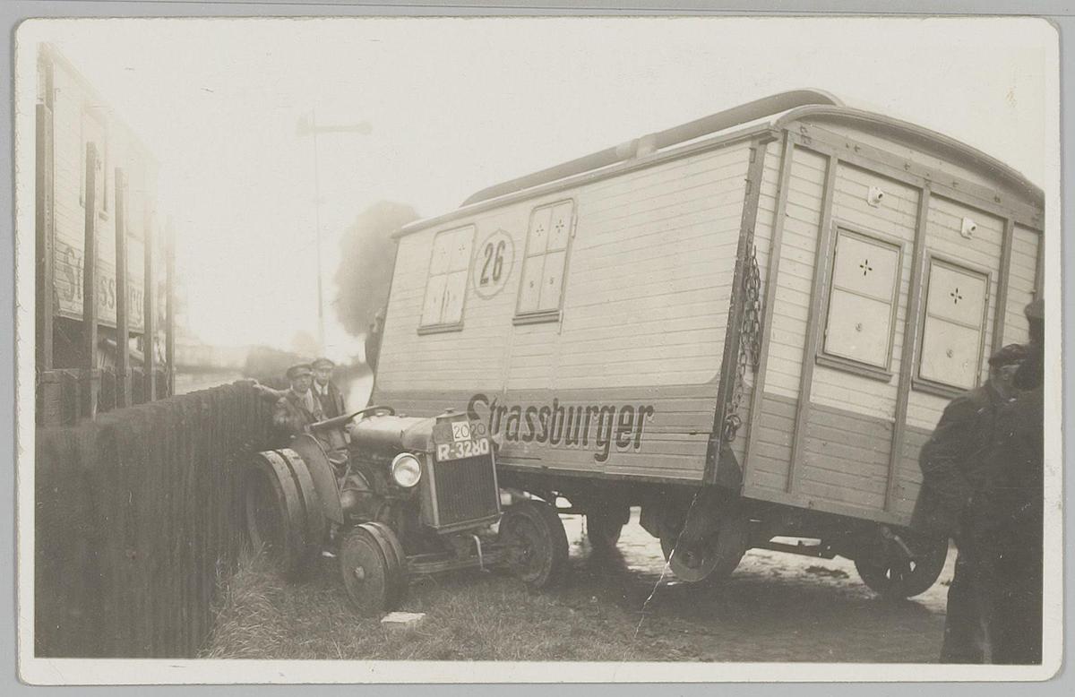 Mensen bij een circuswagen van Strassburger
