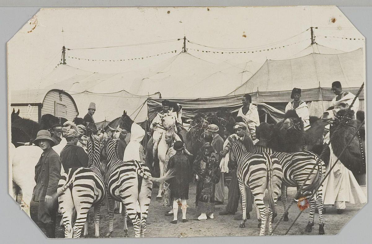 Kamelen en zebra's, Circus Strassburger, Nederland 1928
