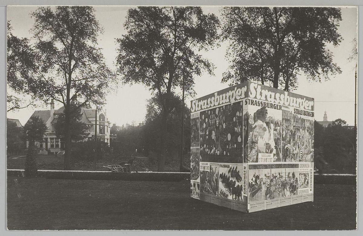 Straastbeeld met affiches van Strassburger. 2 tot en...