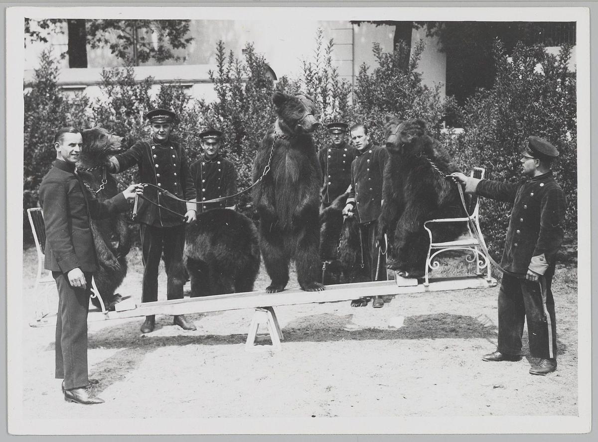 Dresseurs met beren op de wip, Circus Strassburger. ...
