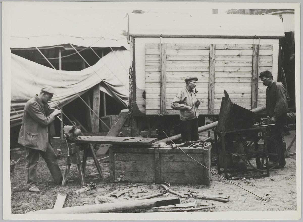 Opbouw van de tent van Circus Strassburger, 1928