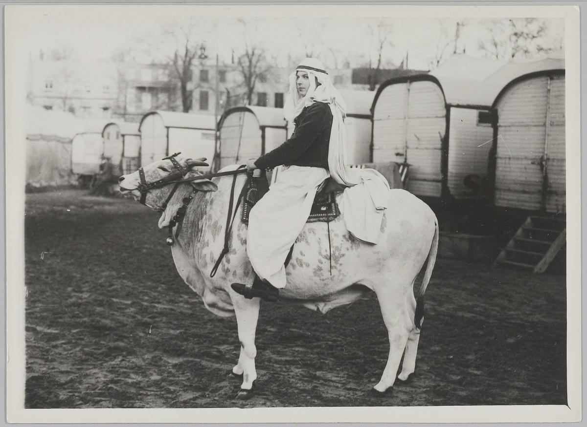 Vrouw op os, Circus Strassburger. Den Haag, nov. 1928