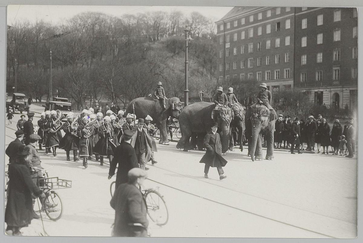 Optocht fanfare Circus Strassburger, 1929, Zweden
