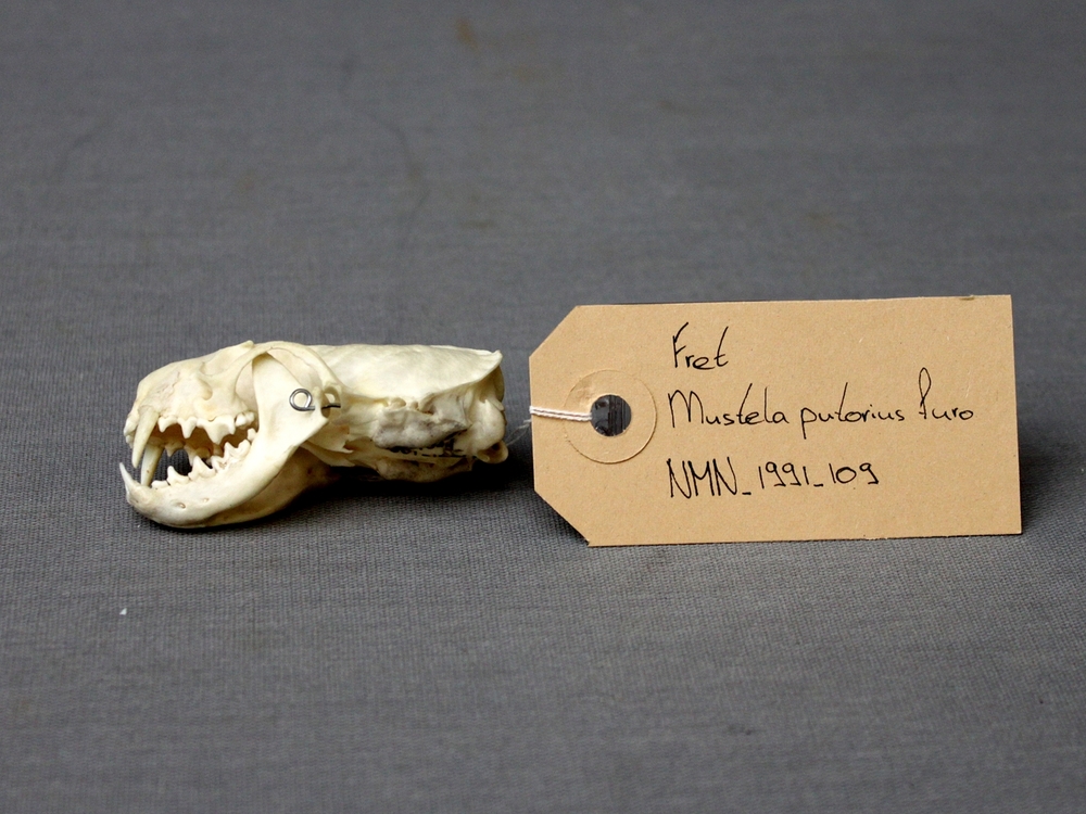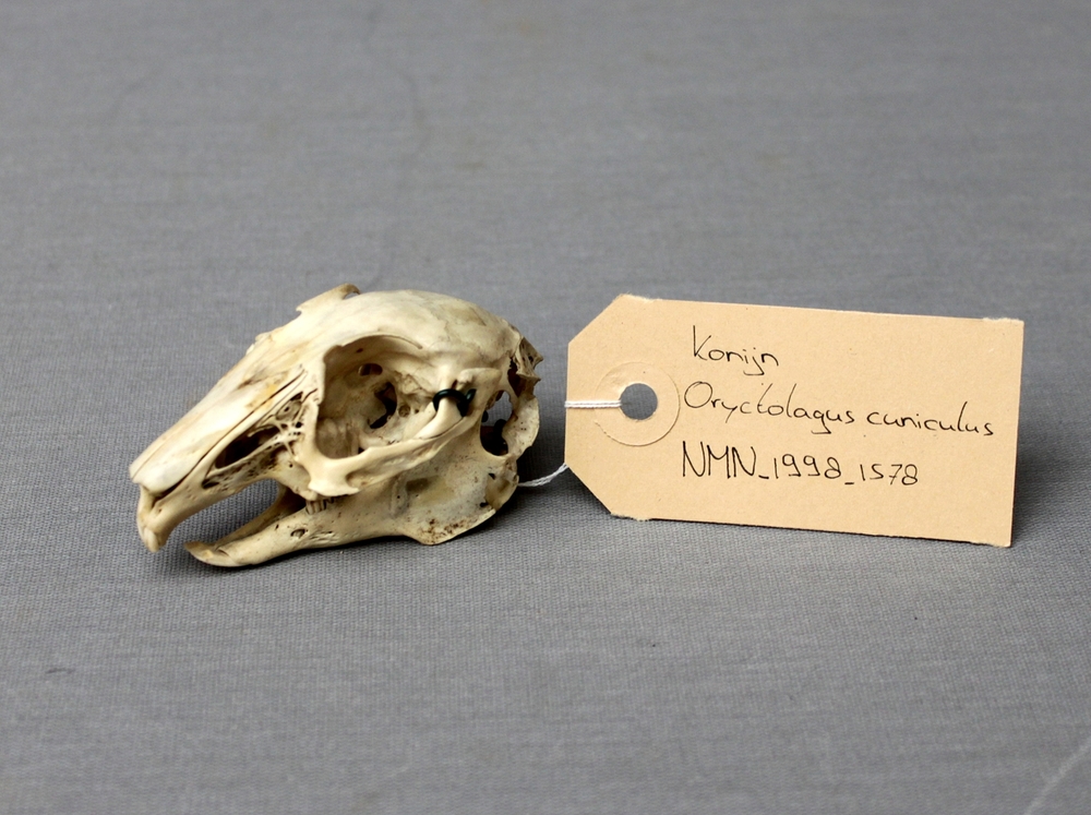 Konijn; schedel met onderkaak en atlas
