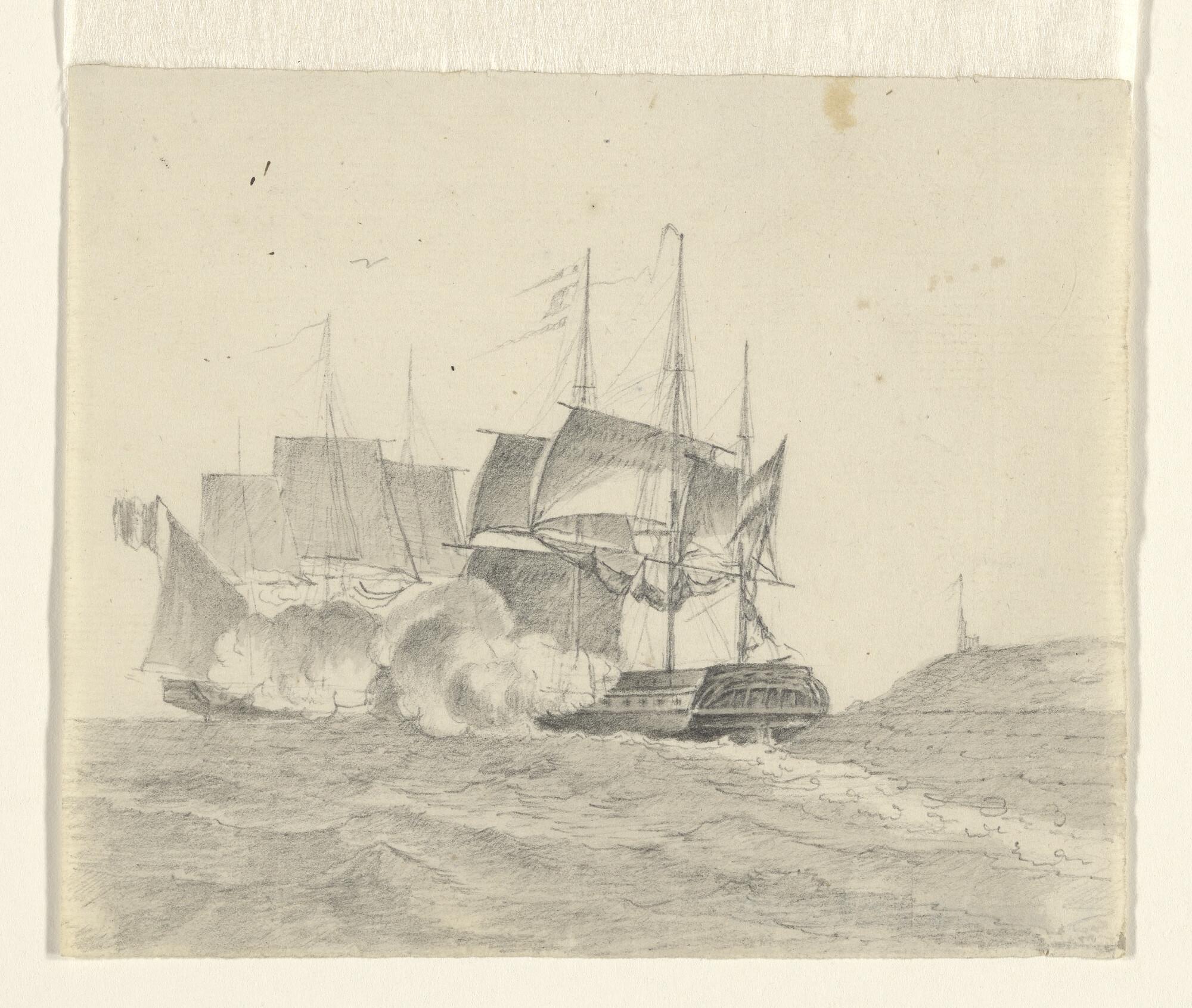Een scheepsgevecht tussen een Nederlands en een Fran...
