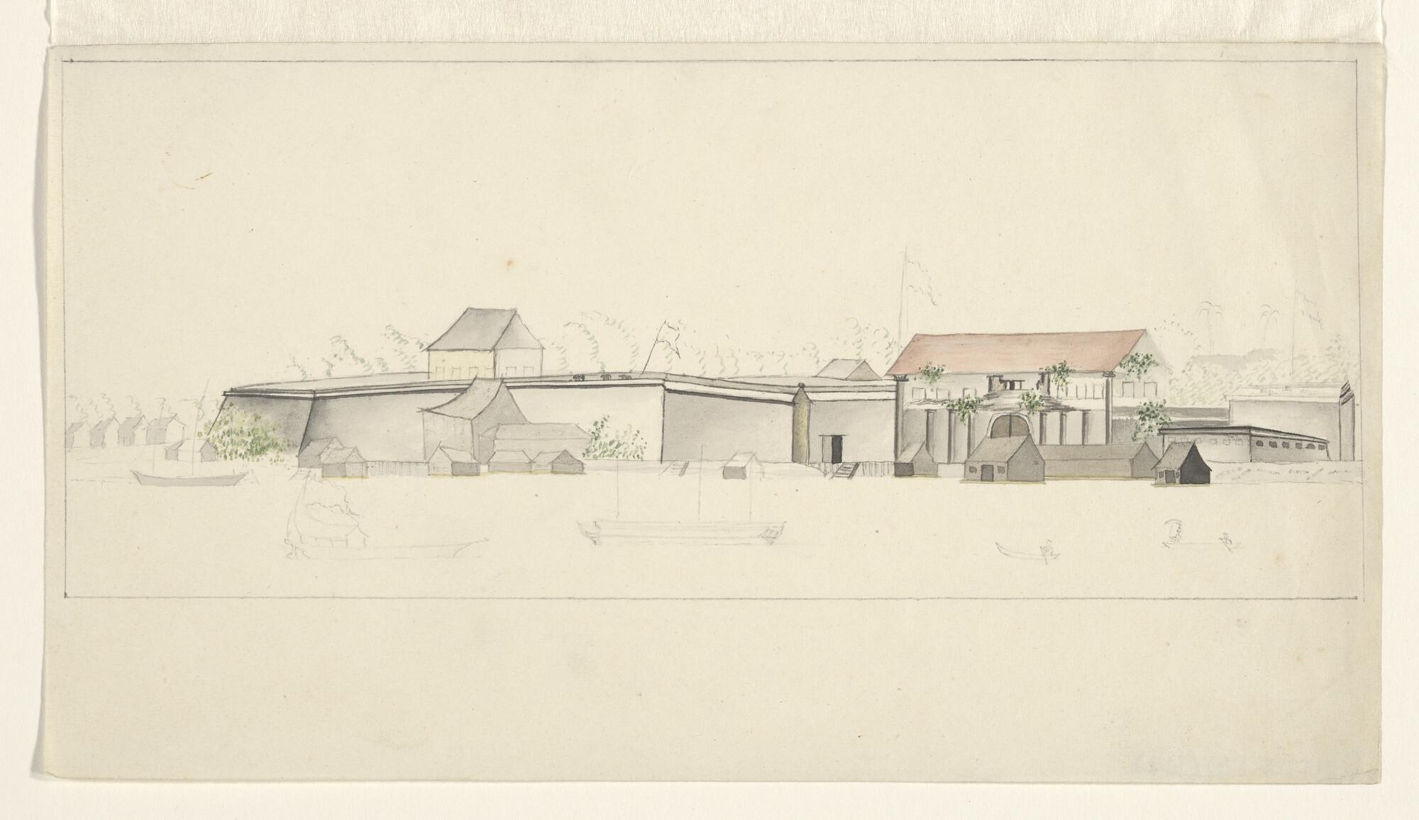 Nederlandse oorlogsschepen en inheemse vaartuigen op...